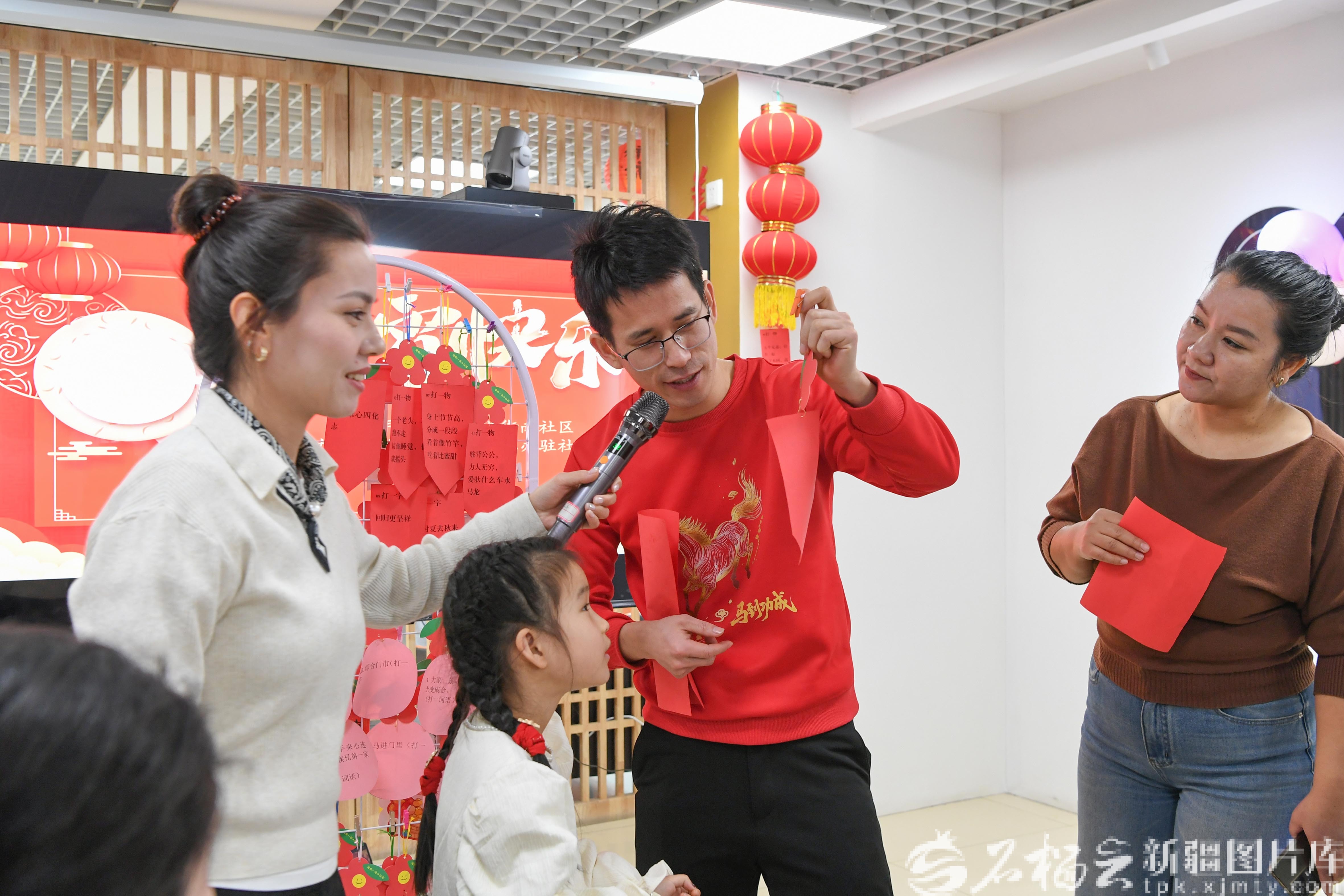 2月28日,彩云社区居民在联欢会上猜谜语。石榴云/新疆日报记者 王禹摄