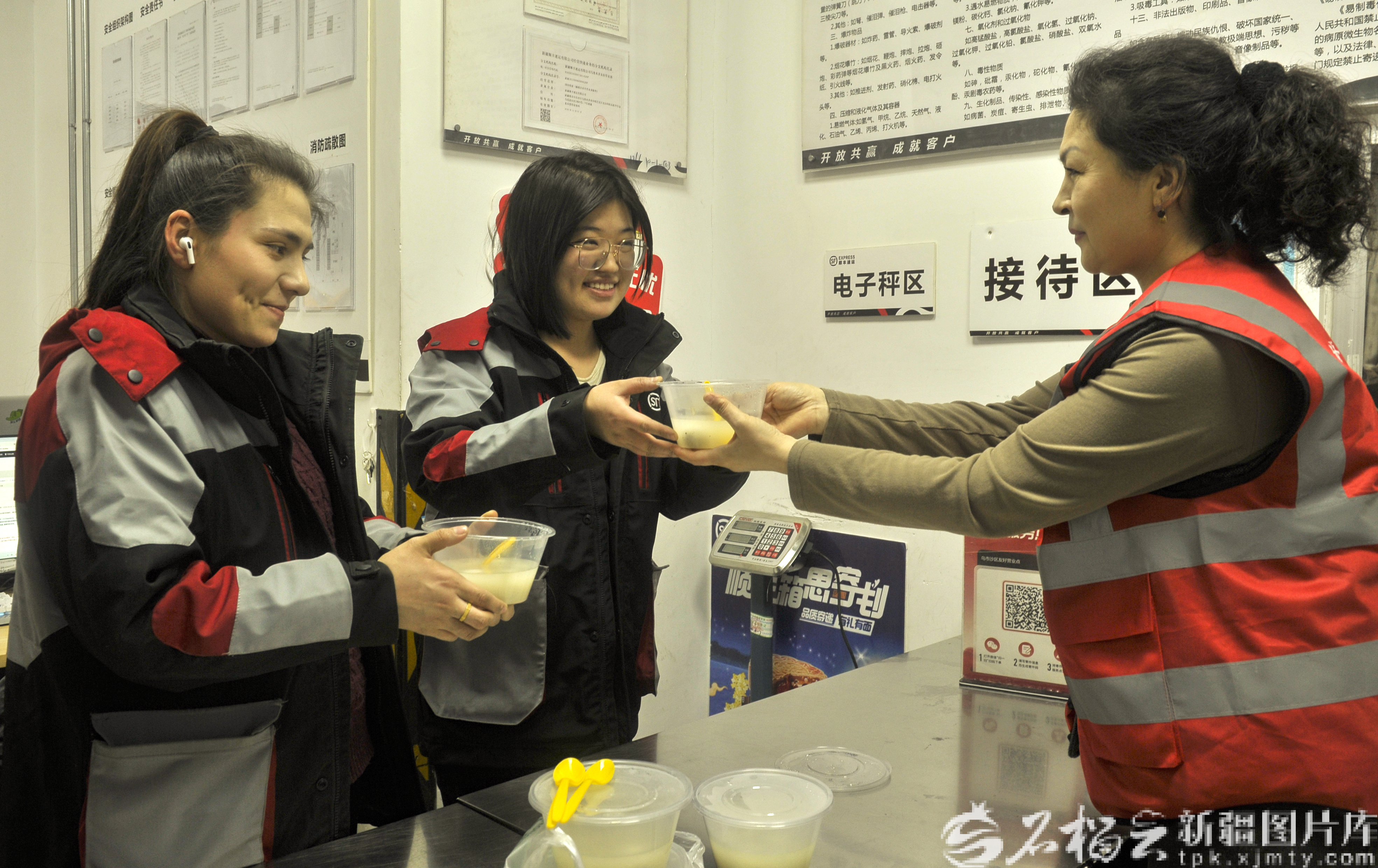 2月28日,社区志愿者给商户送去元宵。石榴云/新疆日报记者 王禹摄