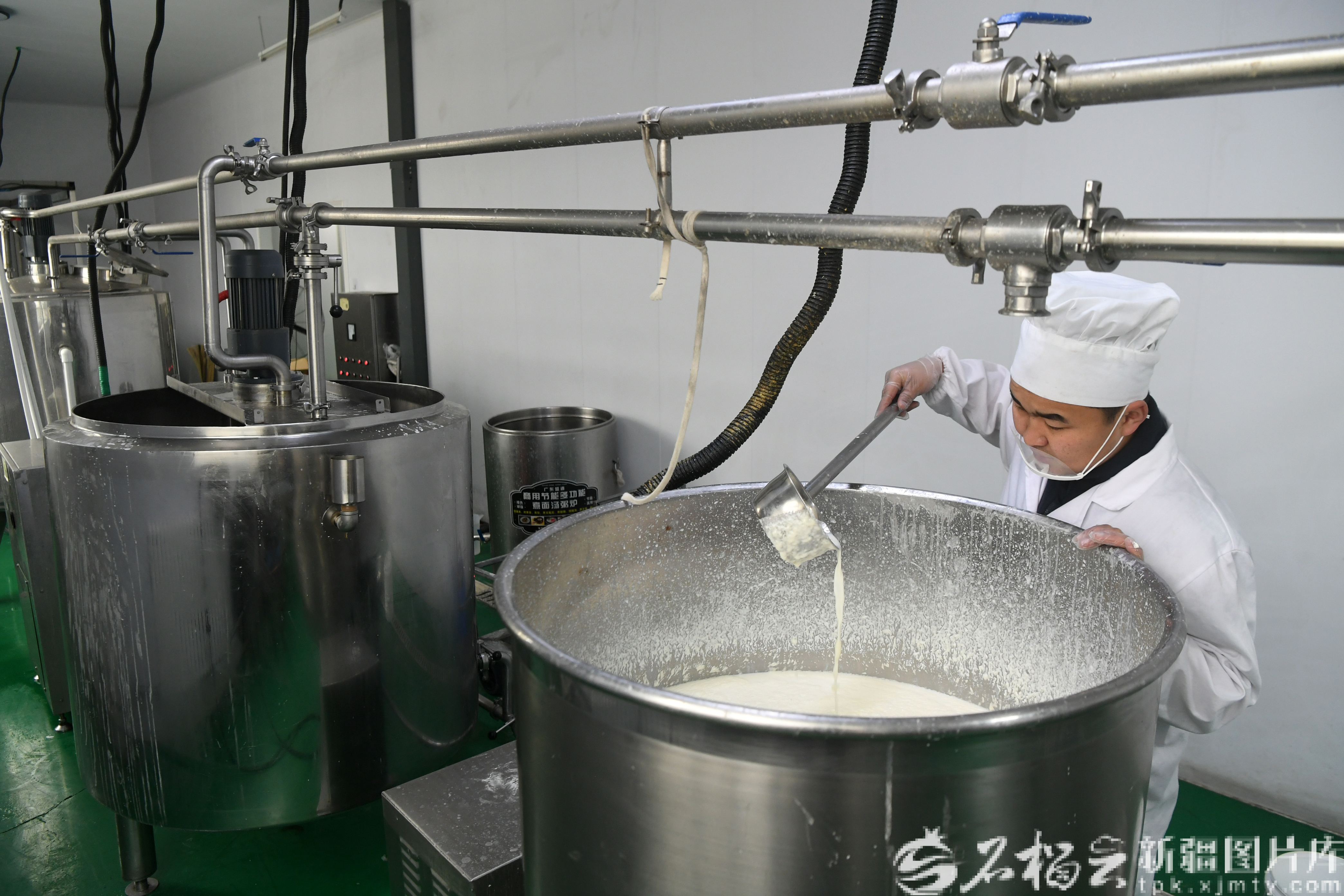 石榴云/新疆日报讯(记者 秦梅花摄影报道)春节期间,乌鲁木齐新牧醇奶制品有限公司的车间里,机器不停运转,奶香飘满整个院落。26岁的吐玛尔别克·赛里克哈孜忙得脚不沾地,因为三名员工回家过年,从送货、发酵到烘干、包装,所有环节他都要亲自上阵。