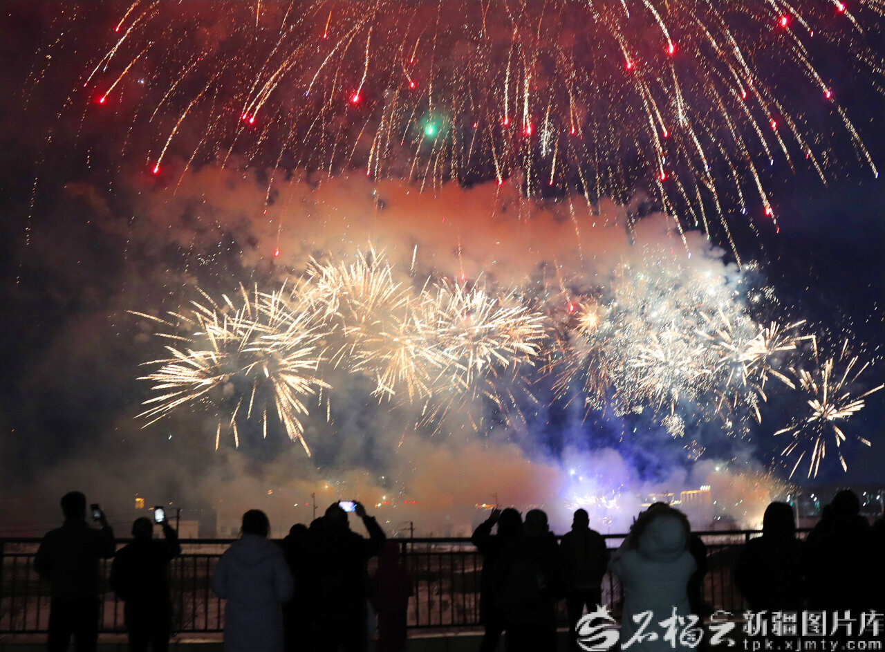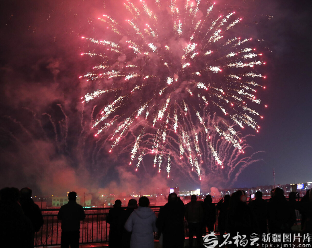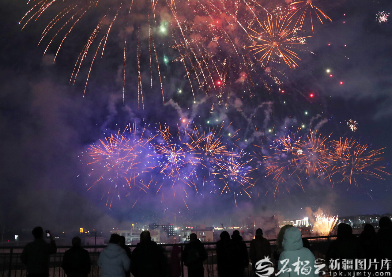 3月3日晚,沙湾市文旅中心上空的璀璨烟花秀。