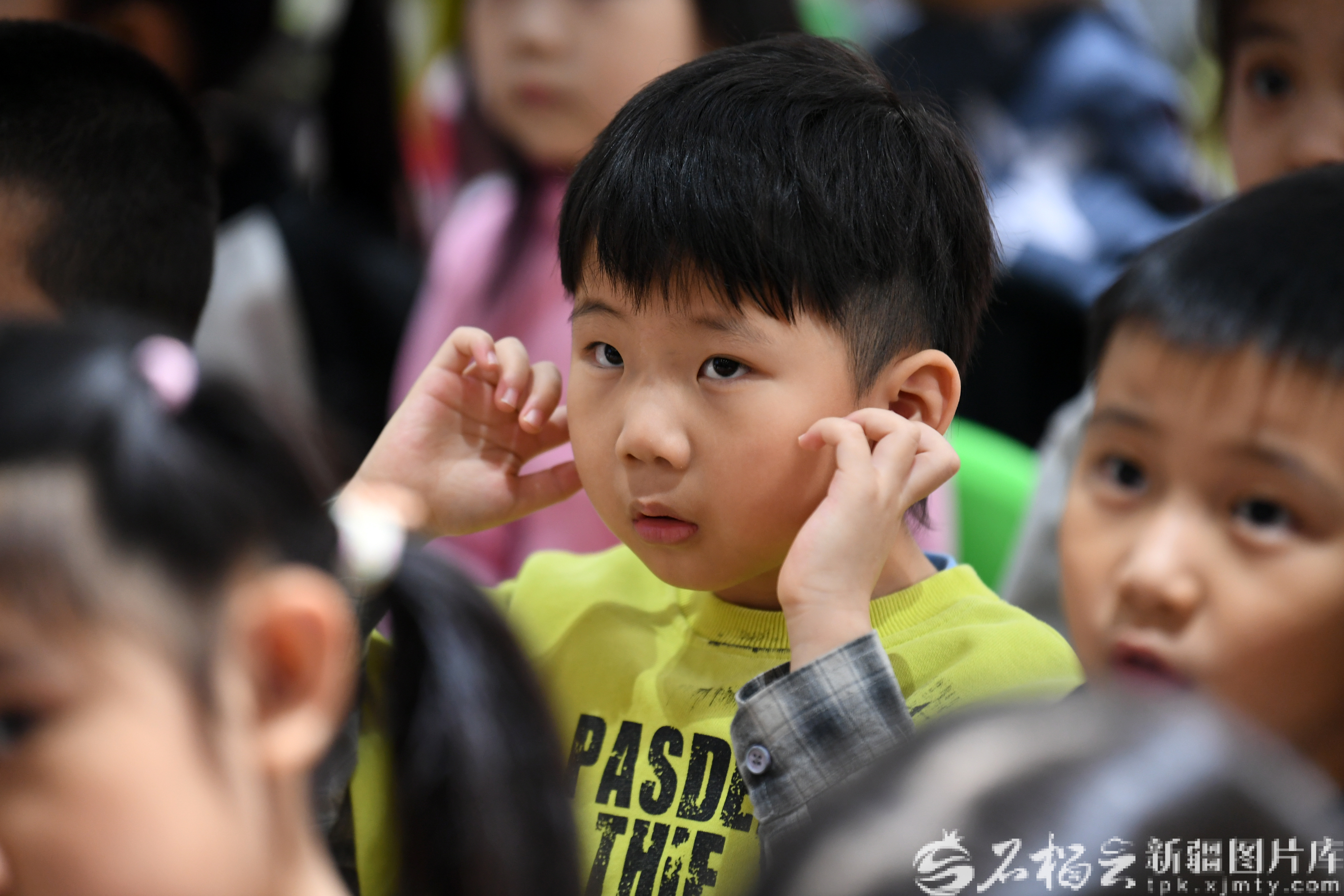 3月3日,小朋友在互动中学习科学护耳小常识。