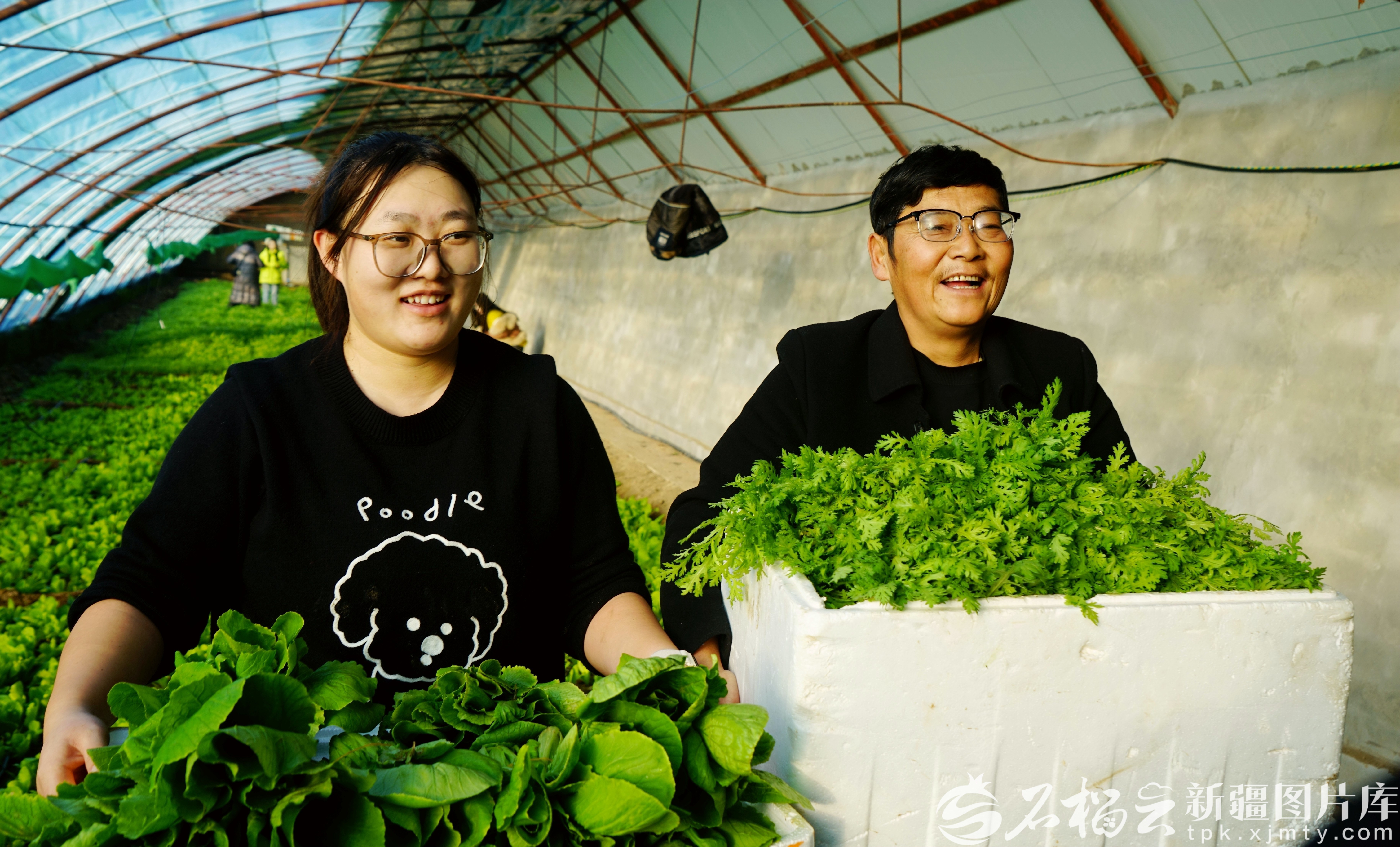 3月6日,木垒哈萨克自治县新户镇三畦村蔬菜大棚里,种植户采摘各类蔬菜,保障市场供应。董均元摄