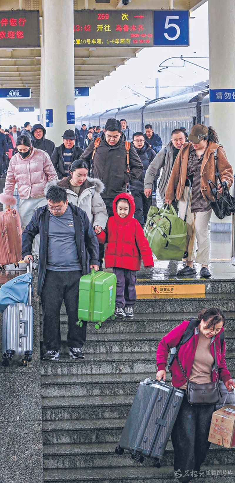 3月12日,春运收官前一天,众多旅客抵达哈密站。