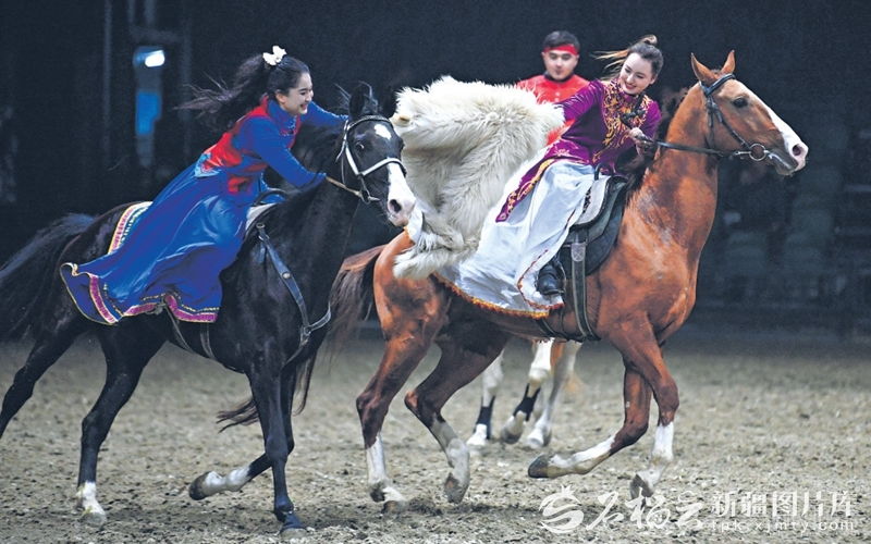 3月10日,新疆古生态园汗血马基地里马蹄声阵阵。骑手布阿依夏木·吐尔洪稳坐马背,拉弓、放箭,动作行云流水、一气呵成,赢得现场观众阵阵掌声。
