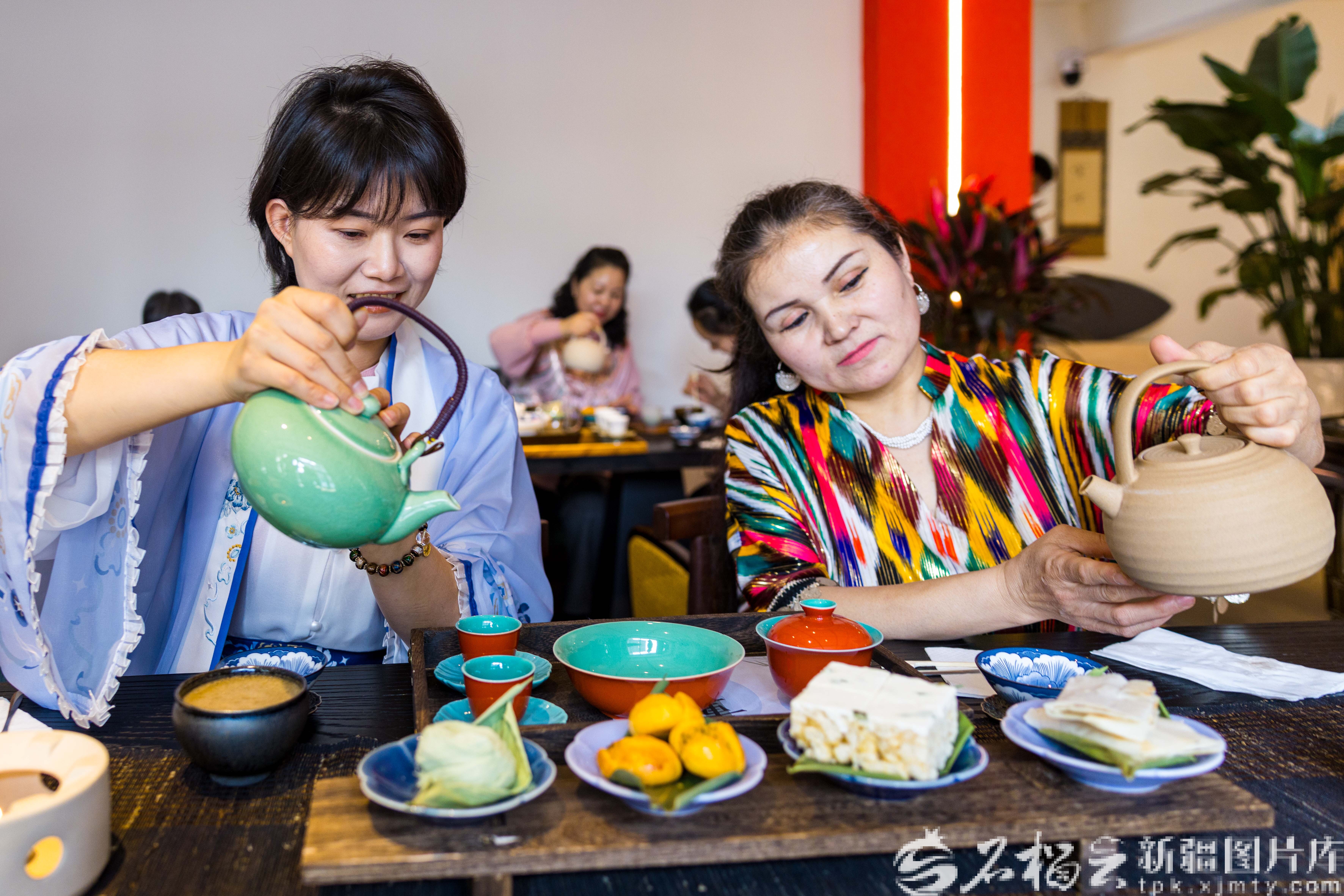 3月17日,乌鲁木齐市天山区幸福路街道中环路北社区开展“品茶香 学茶艺”活动。图为居民在学习茶艺。孙振嵩摄
