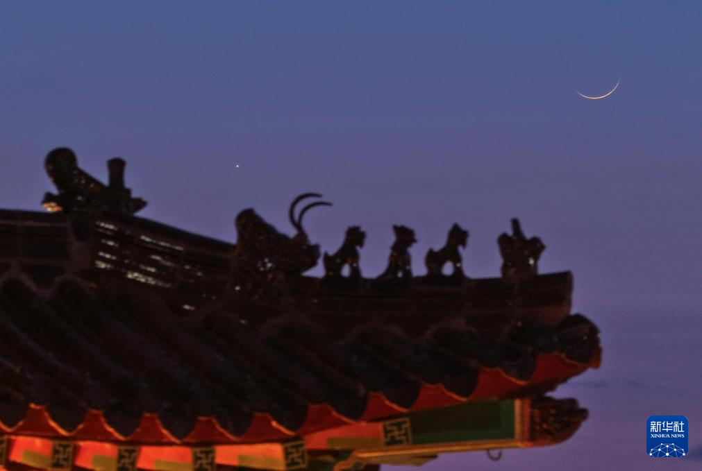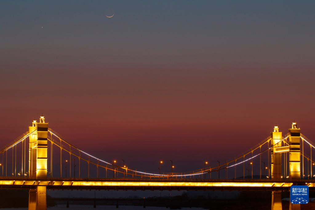 3月20日在黑龙江省牡丹江市拍摄的“长庚伴月”。新华社发(王宝勋摄)
