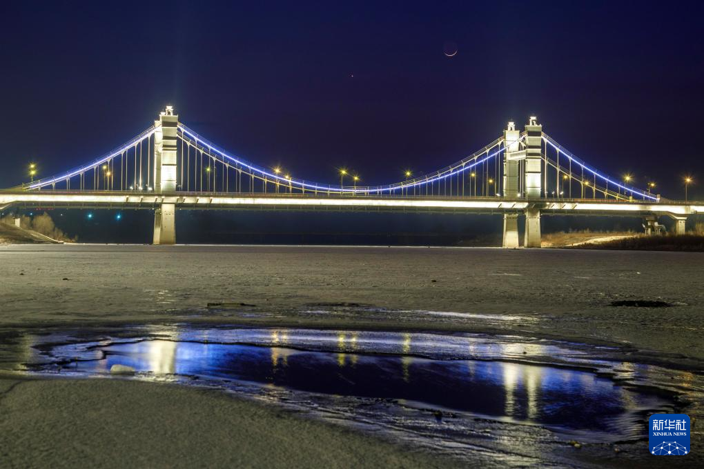 3月20日在黑龙江省嘉荫县拍摄的“长庚伴月”。新华社发(李绍军摄)