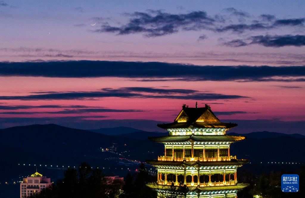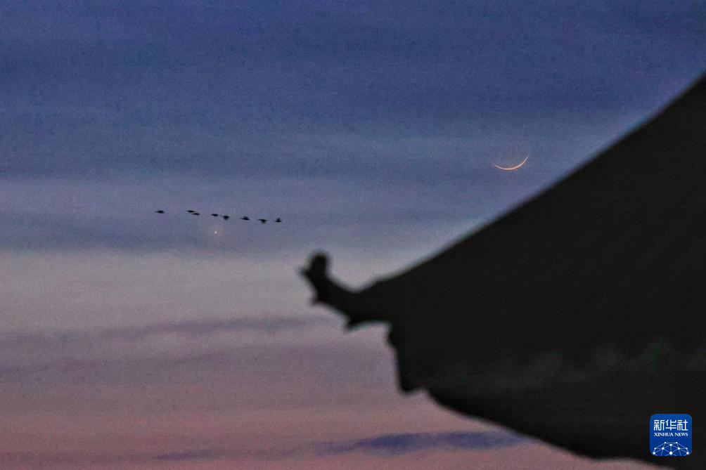 3月20日在黑龙江省哈尔滨市拍摄的“长庚伴月”(无人机照片)。新华社发(刘大鹏摄)
