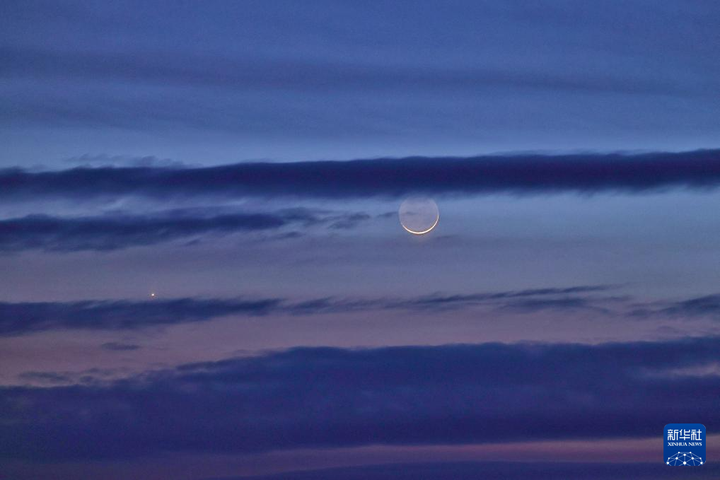 3月20日在黑龙江省富锦市拍摄的“长庚伴月”。新华社发(庚喜庆摄)