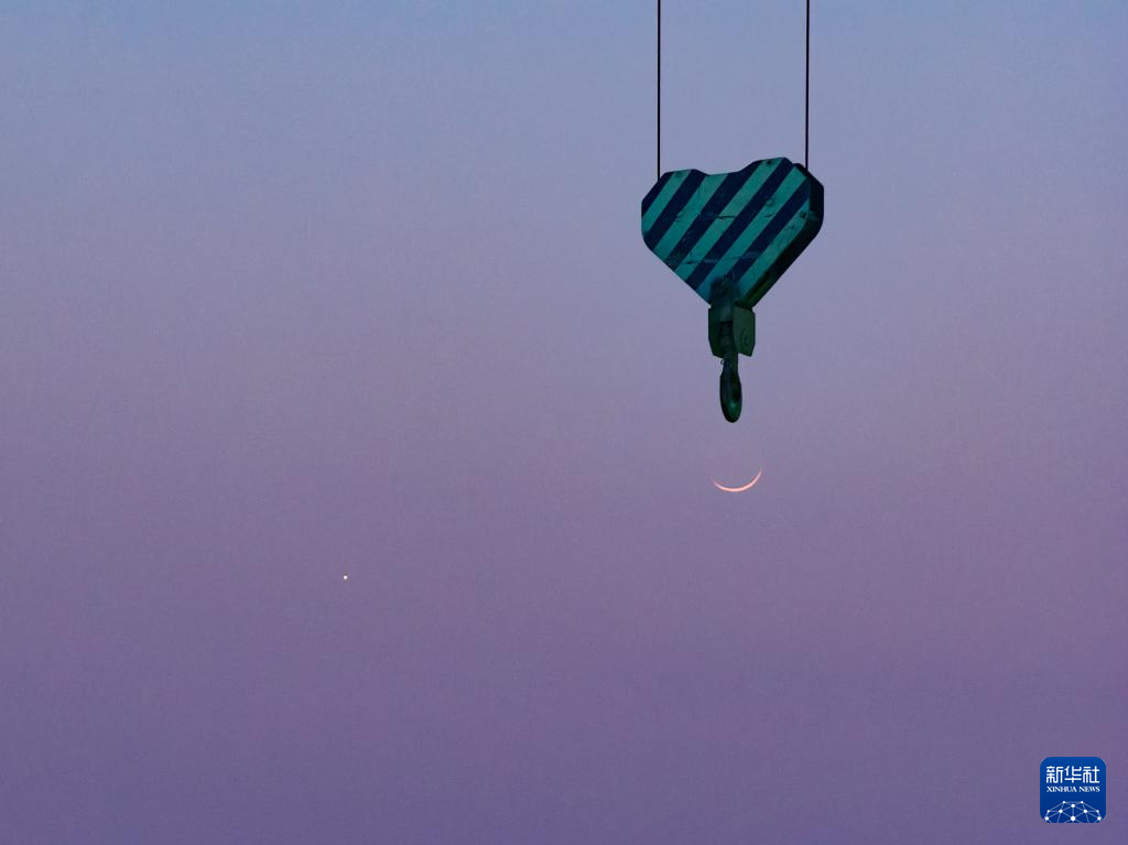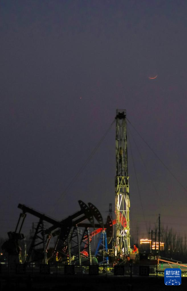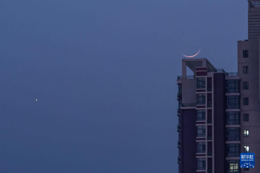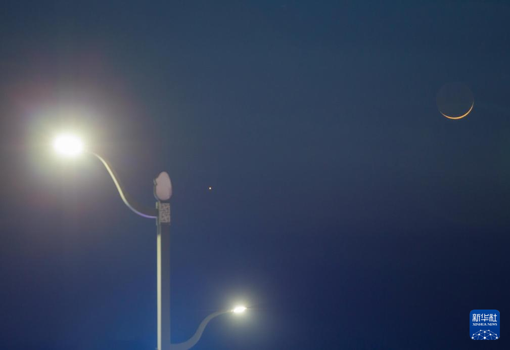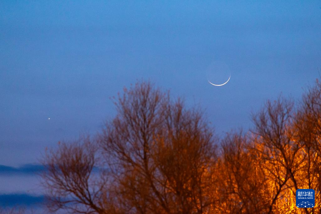 3月20日在黑龙江省大庆市拍摄的“长庚伴月”。新华社发(马克摄)
