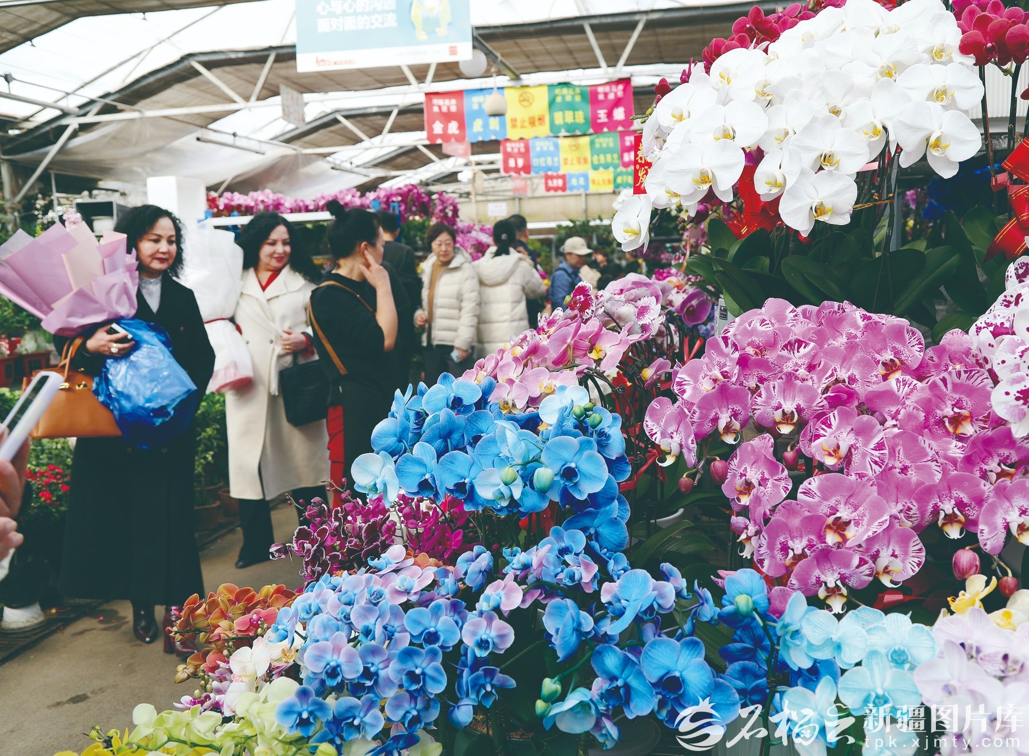3月9日,在乌鲁木齐市明珠花卉市场,市民正在选购花卉。王立华 摄