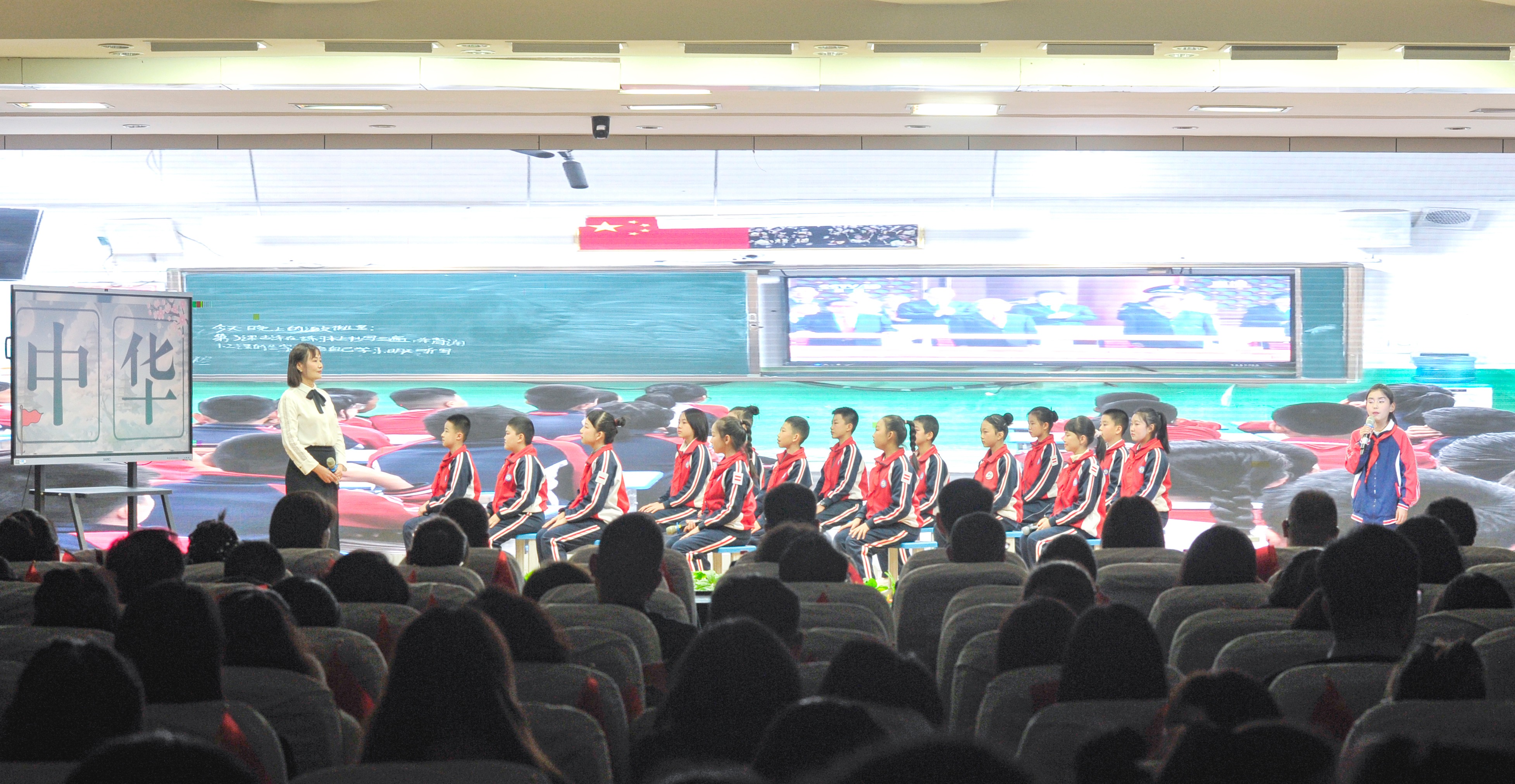 3月17日,师生在表演情景剧《一字一世界·一声一中华》。当日,以“赓续中华语言文脉,铸牢文化认同之根”为主题的“金胡杨”大中小学思政课一体化活动在乌鲁木齐市第122小学举行。活动由新疆工程学院马克思主义学院联合和田地委教育工委、地区教育局,新疆艺术学院马克思主义学院,乌鲁木齐经济技术开发区(头屯河区)教育局共同举办。石榴云/新疆日报记者 王禹摄