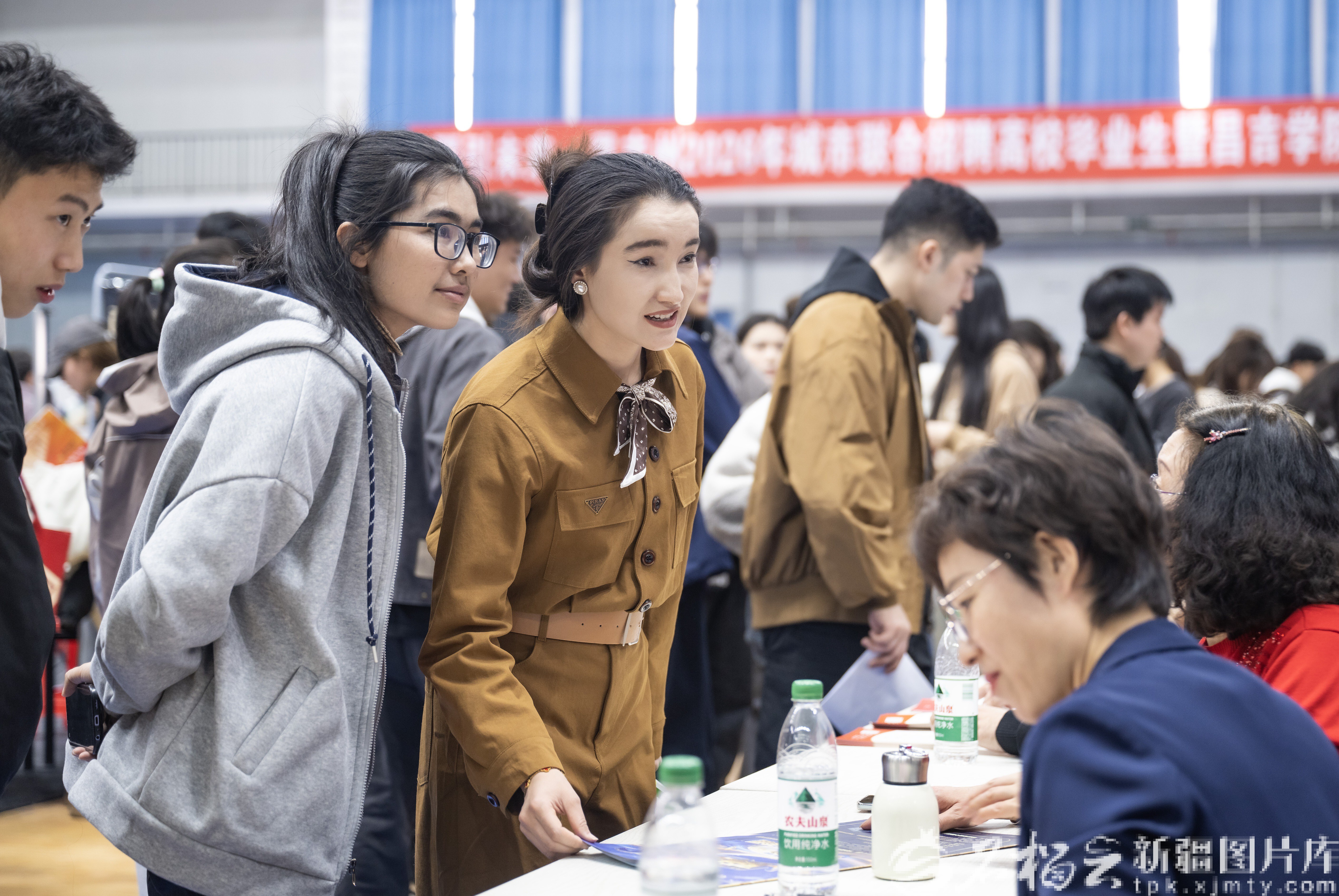 3月18日,昌吉回族自治州2026年城市联合招聘高校毕业生暨昌吉学院春季专场招聘会在该校体育馆举行,应届毕业生现场咨询就业岗位、对接求职意向。何龙摄