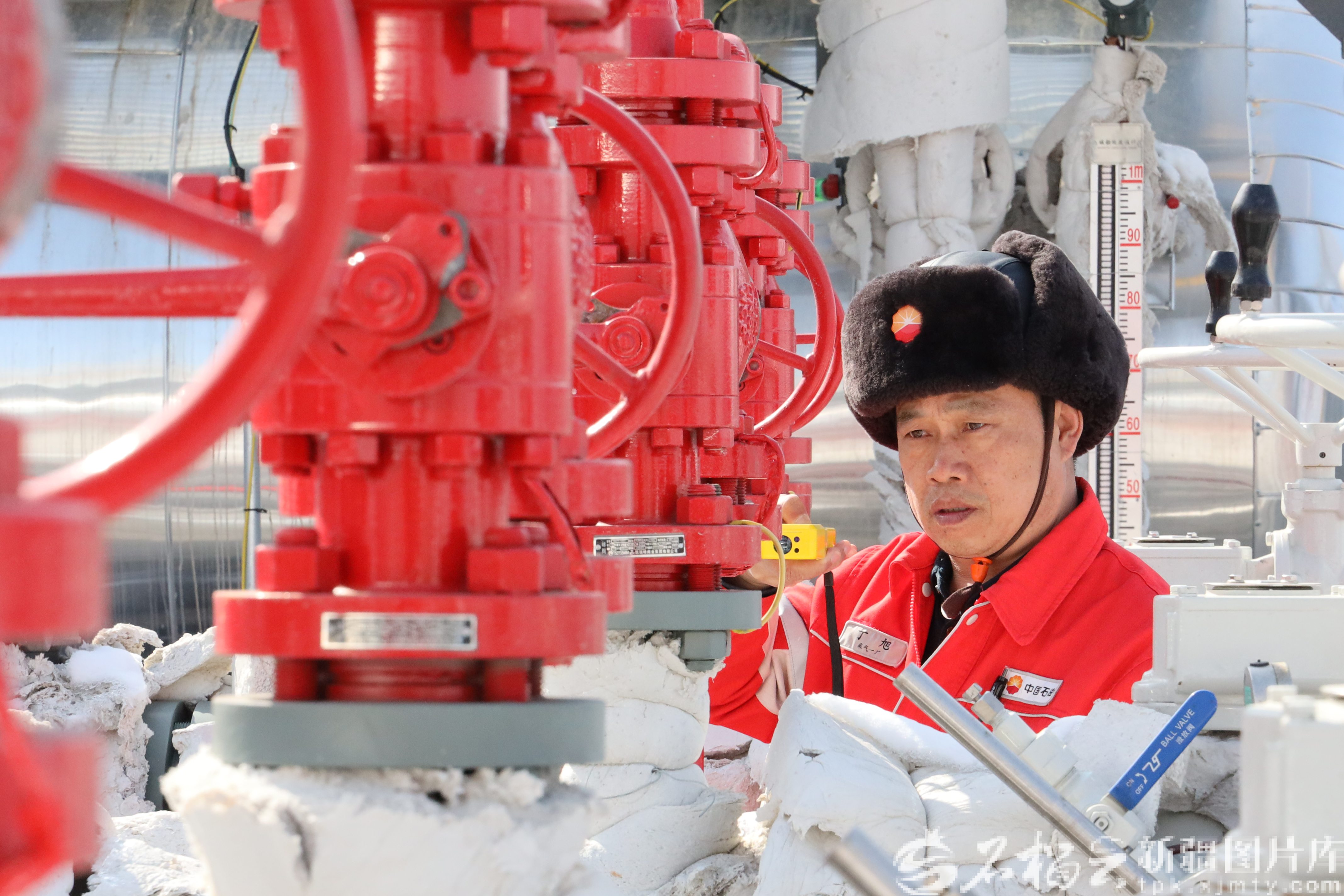 3月14日,中国石油新疆油田公司呼图壁天然气处理站员工在检测阀门设备,严守安全生产关口,全力保障民生用气稳定供应。杨楚怡摄