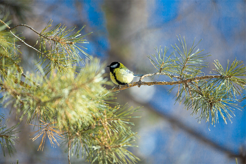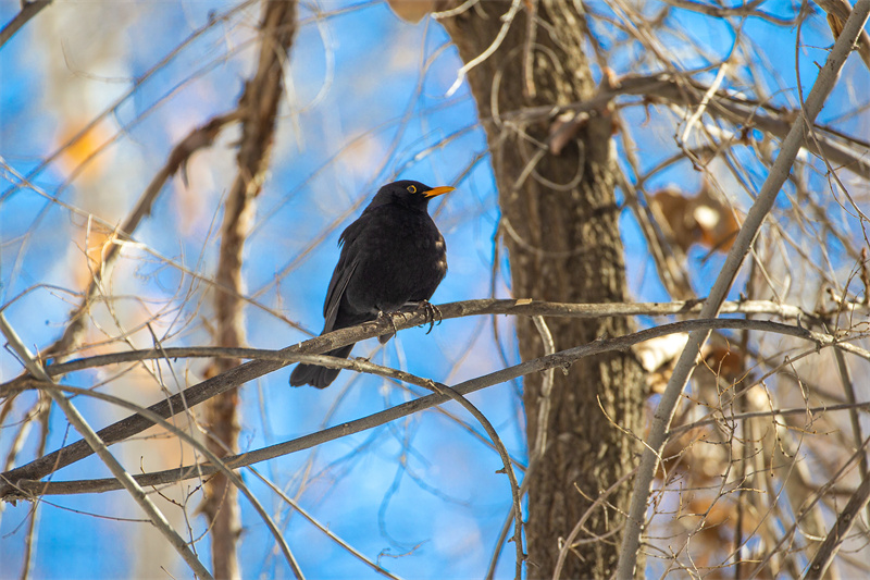 小鸟在枝头栖息。