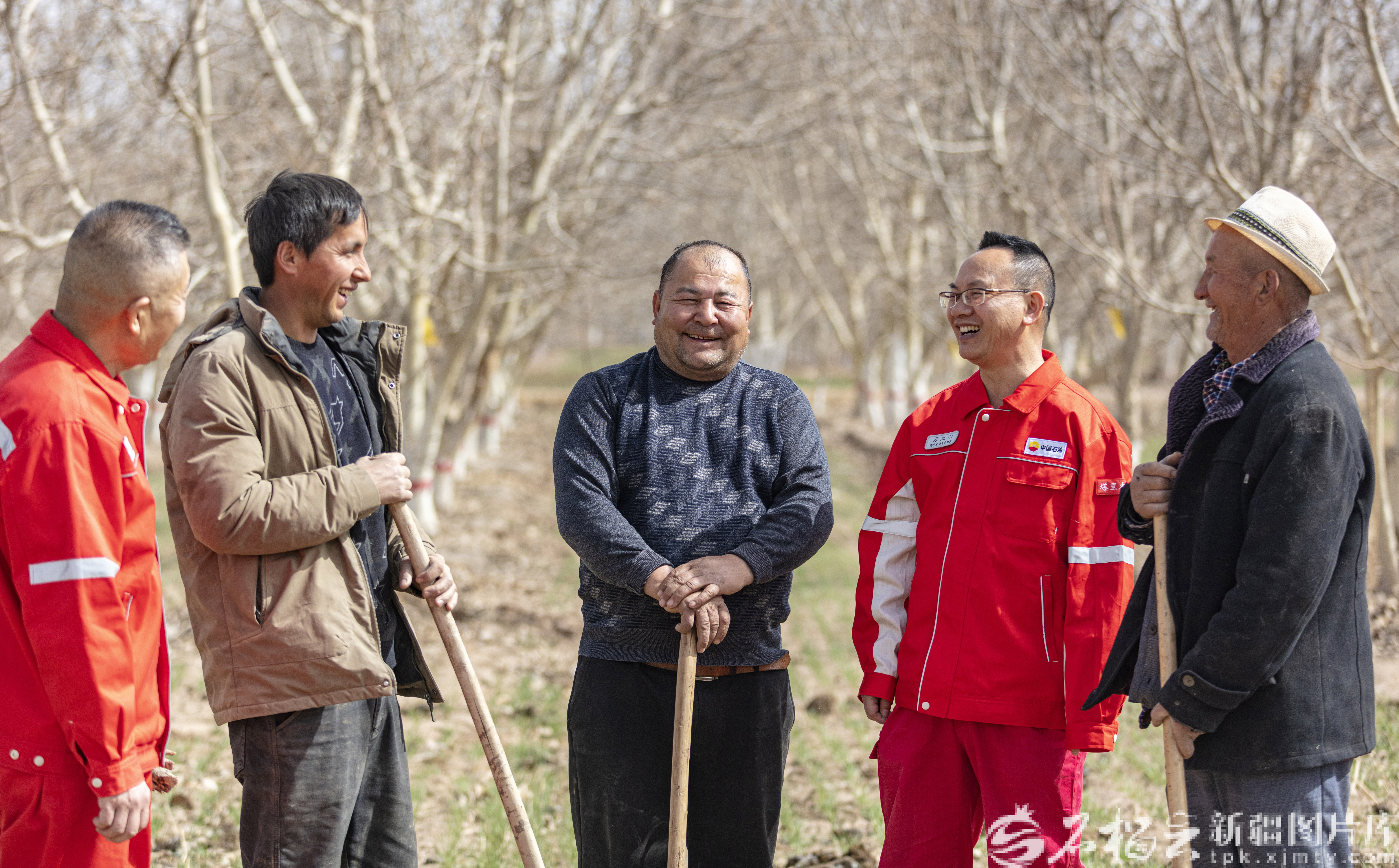 3月19日,中石油塔里木油田公司驻库车市牙哈镇星光村工作队队员深入田间,了解春耕备耕进展,为群众排忧解难、助力生产。卡哈尔·托乎提摄