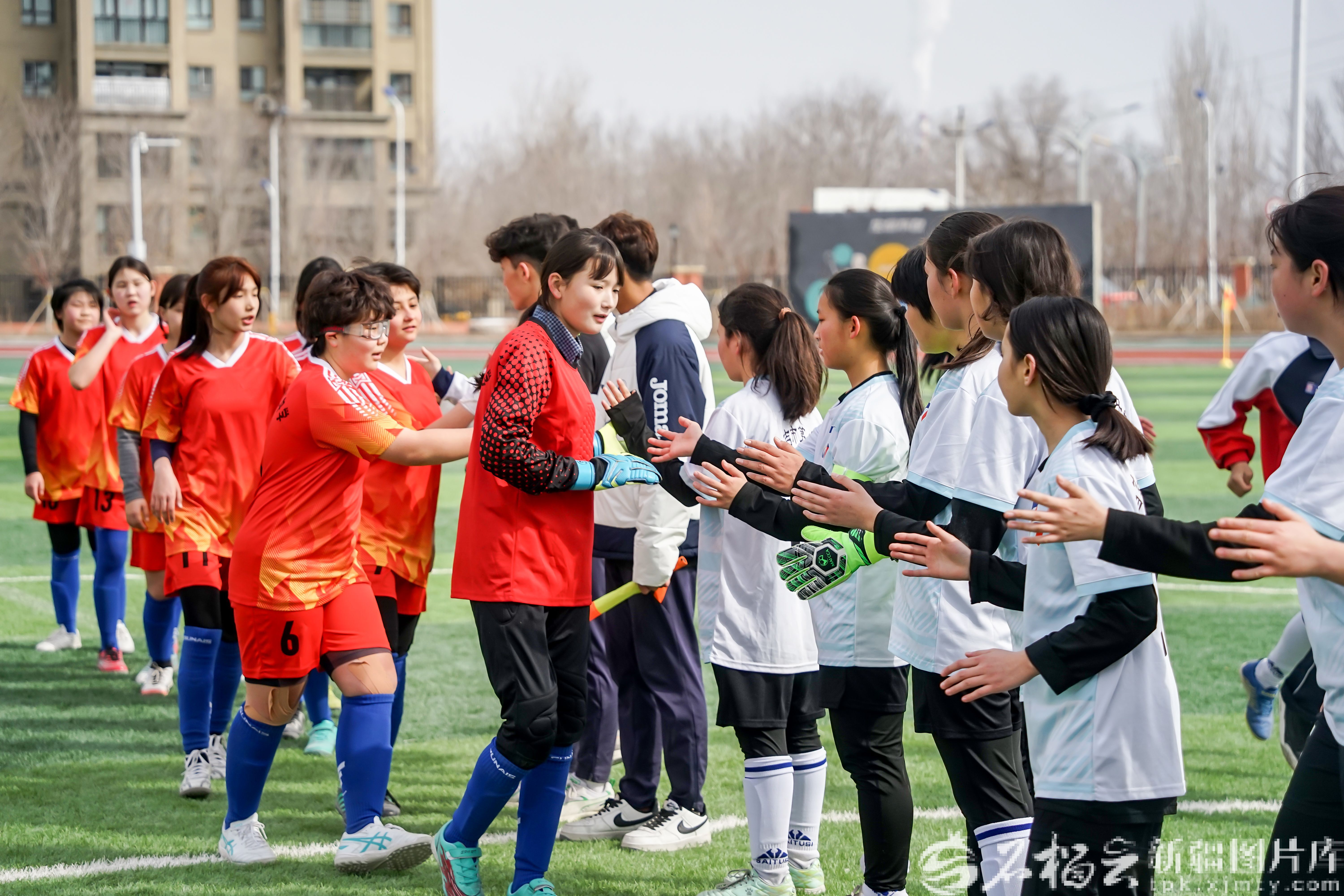 3月17日,由昌吉市教育局、市文旅局联合主办的2026年中小学生(青少年)校园春季足球赛,在昌吉市致远中学开赛。图为赛后,双方队员拍手致意,尽显体育风尚。杨斌摄