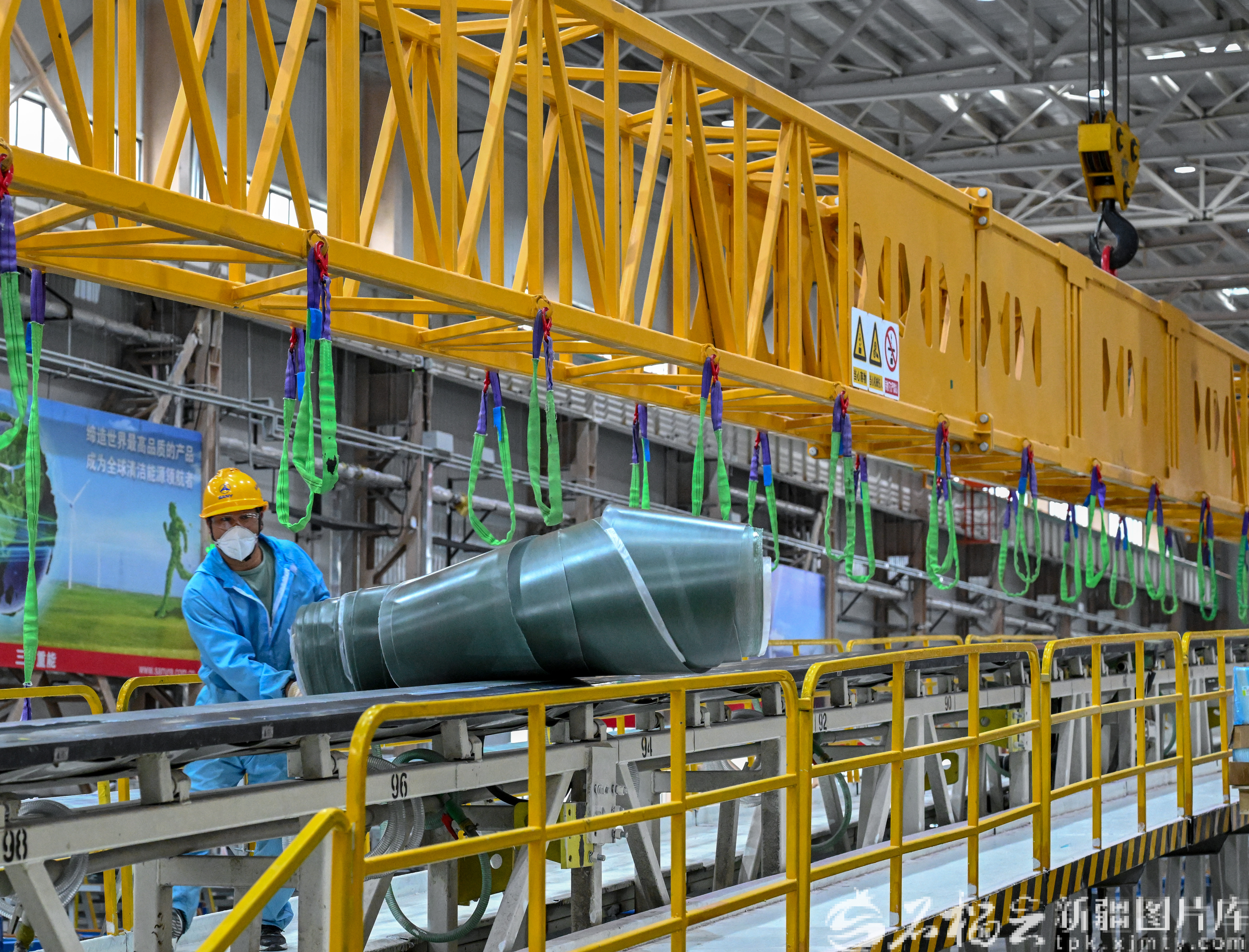 3月24日,工人在三一(塔城)风电设备有限公司生产车间作业。