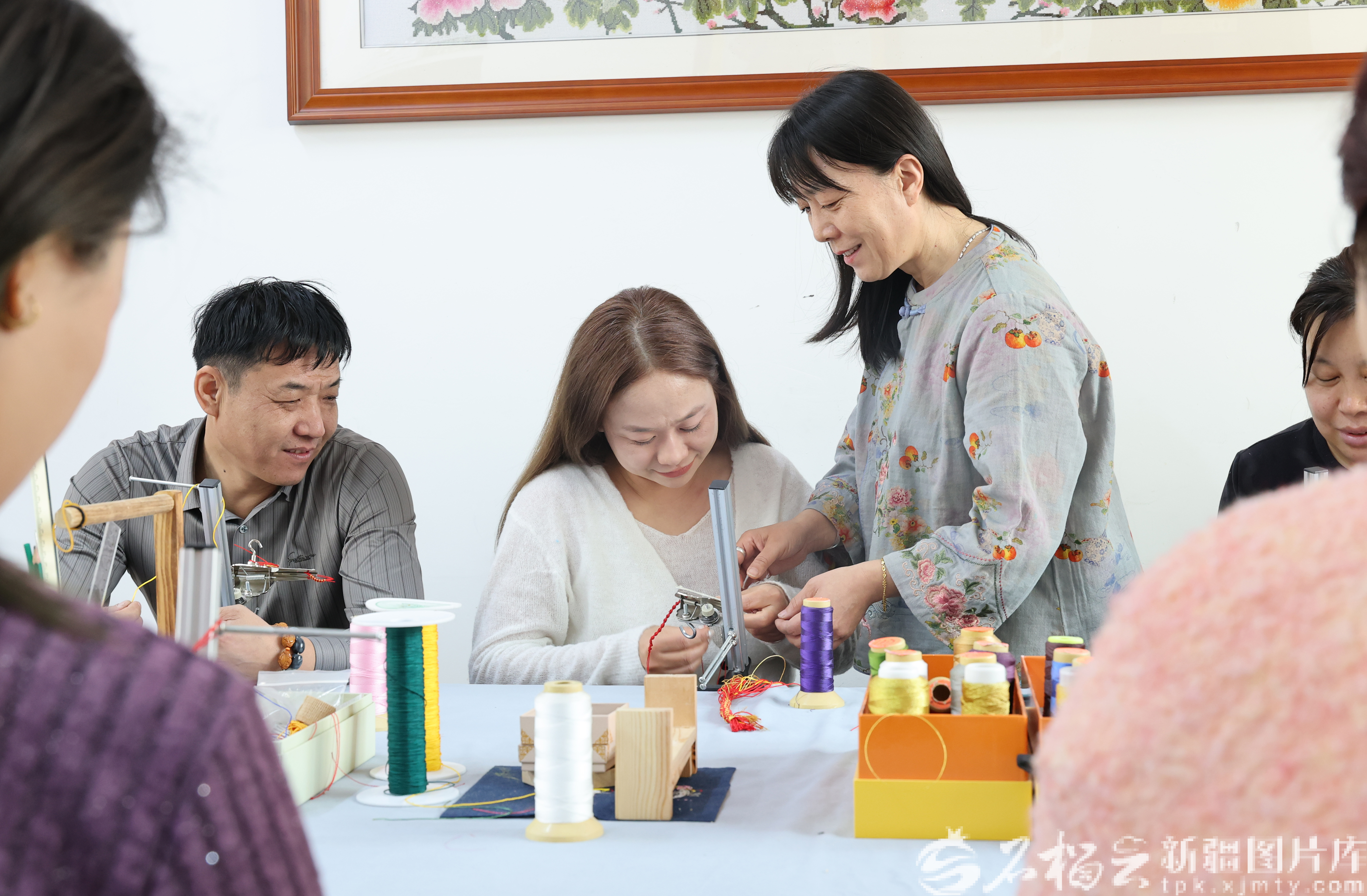 石榴云/新疆日报讯(记者 韩亮摄影报道)3月26日,乌鲁木齐市宏林职业培训学校的非遗绳结课堂上,五彩丝线错落摆放,乌鲁木齐市级非物质文化遗产绳结技艺代表性传承人赵玲正俯身教学。指尖轻挑穿插,短短几分钟,一枚漂亮的绳结便初具雏形。