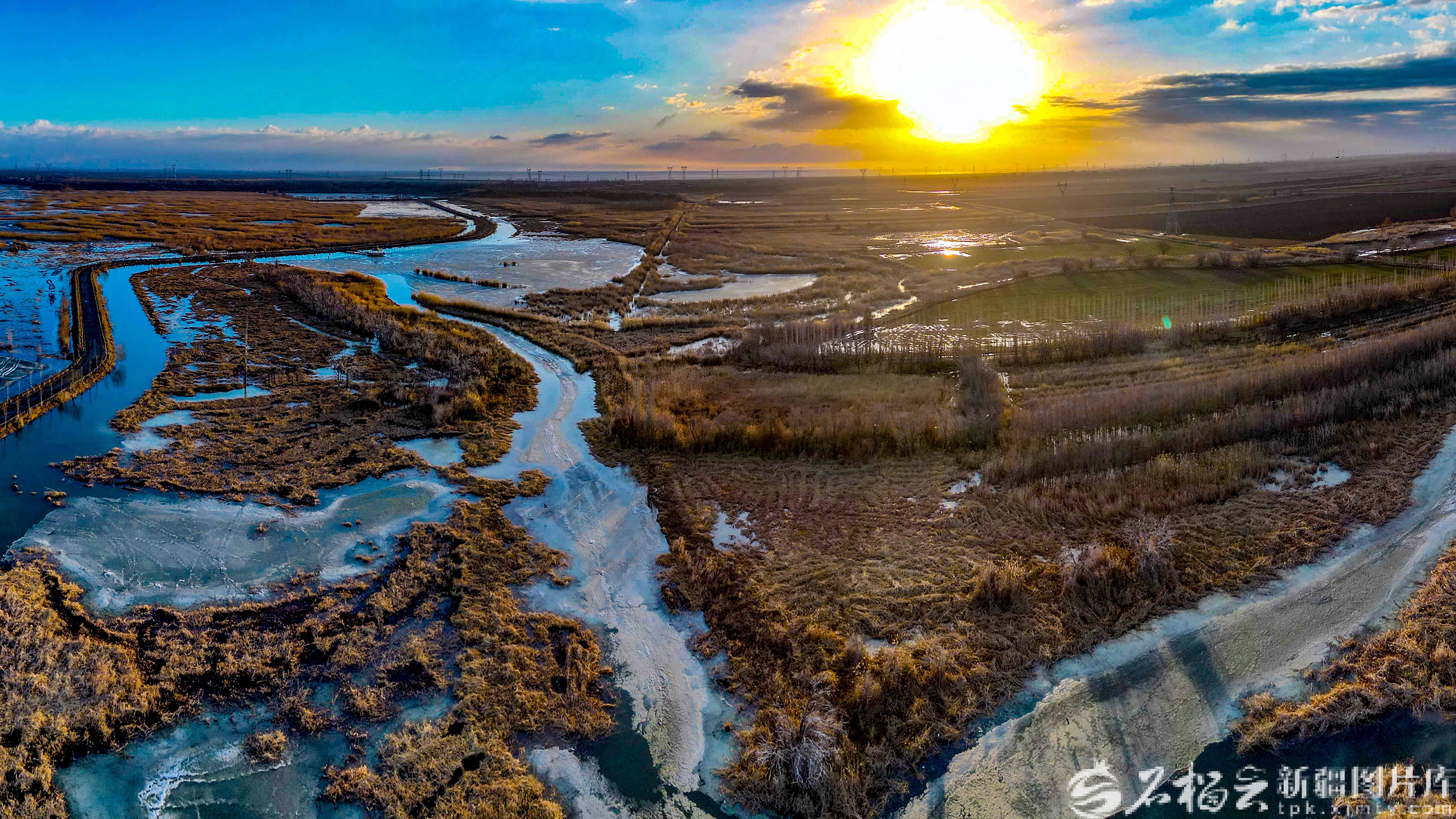 3月25日,在玛纳斯国家湿地公园拍摄的朝霞景观。石榴云/新疆日报记者 蔡增乐摄