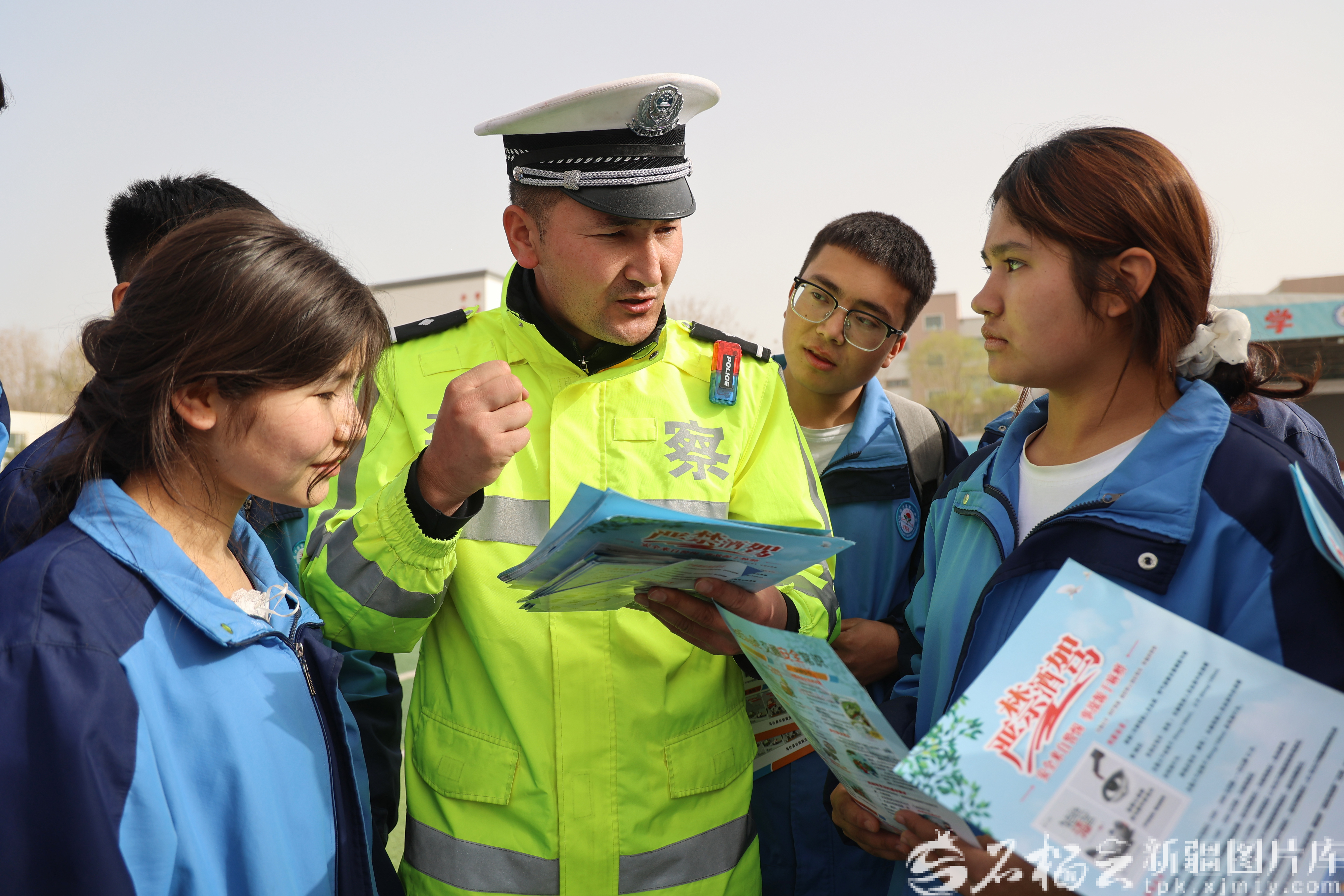 3月27日,乌什县公安局交通管理大队民警走进乌什县第一中学,开展 “同守护 共成长”主题交通安全宣传活动,为全校师生送上实用又暖心的 “交通安全大礼包”。外力·克依木 摄