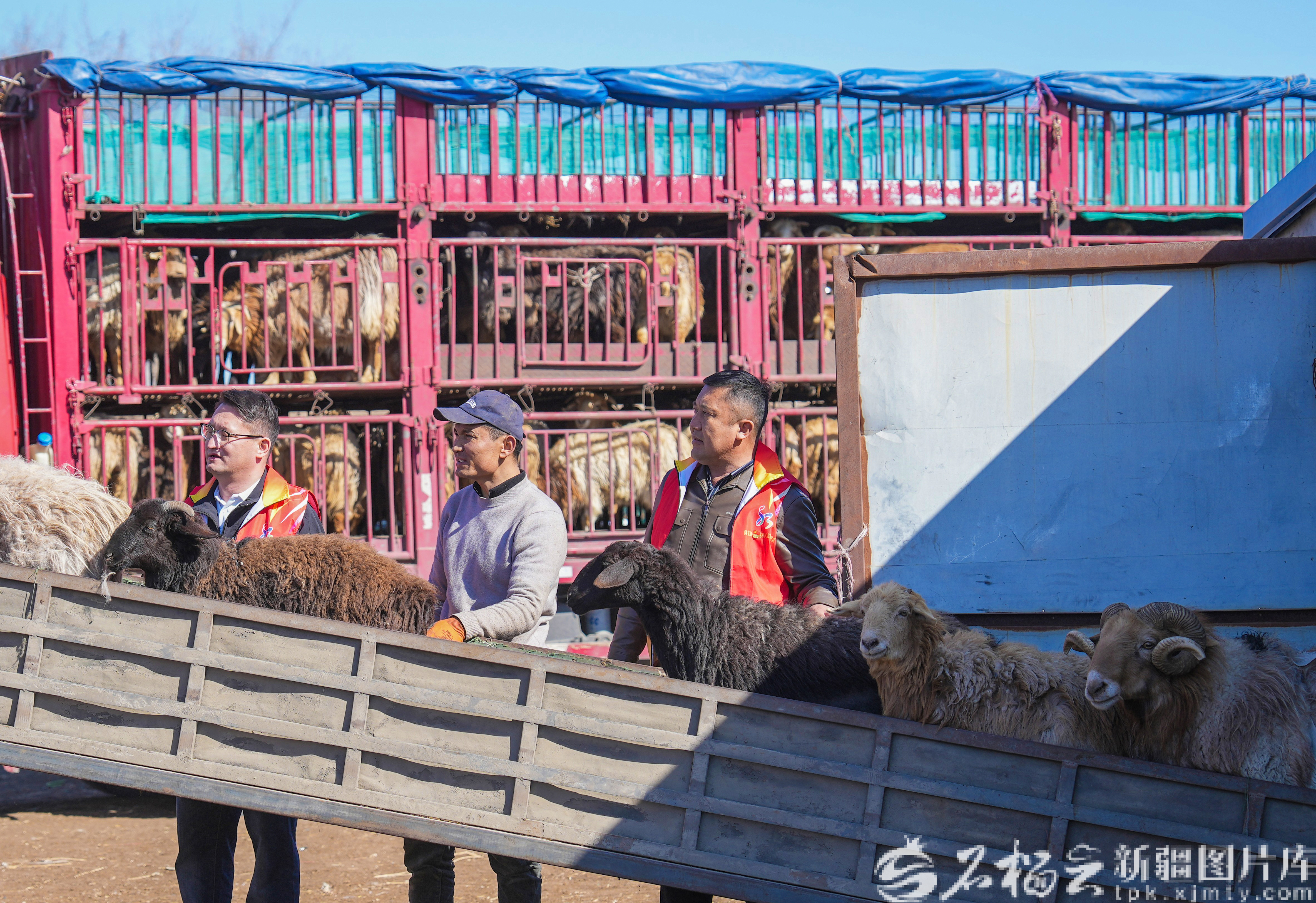 3月26日,在沙湾市小拐农业开发区,党员护牧先锋队队员帮助牧民转运羊群。眼下正值牧区春季转场高峰期,该市博尔通古乡成立党员护牧先锋队,帮助牧民协调大型转运车辆,解决转场途中遇到的困难。杨文秀摄