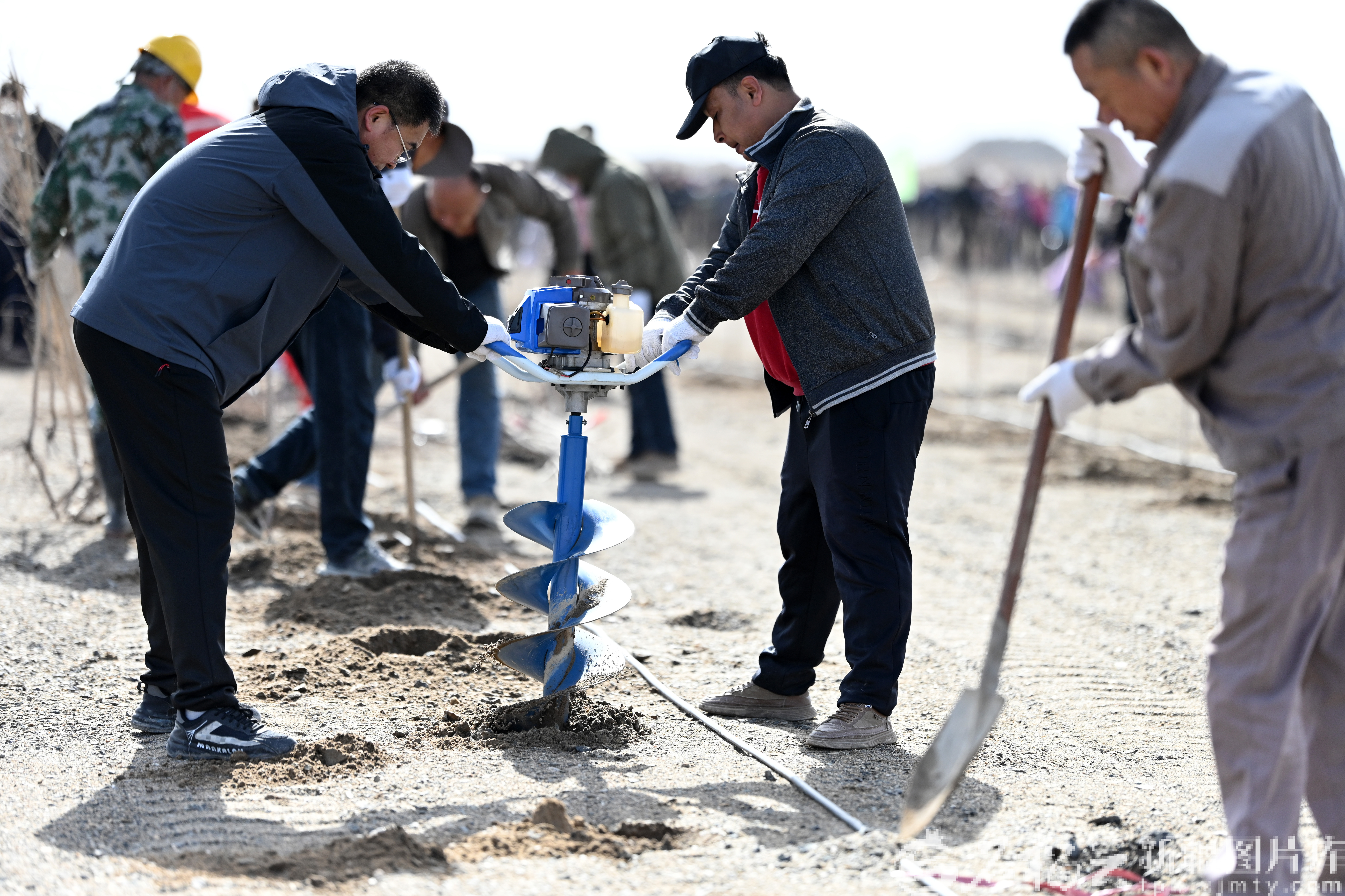 3月27日,库尔勒市组织机关干部职工、企事业单位员工和志愿者在龙山绿化基地开展义务植树活动,共栽植了3.2万株胡杨树苗。确·胡热 摄