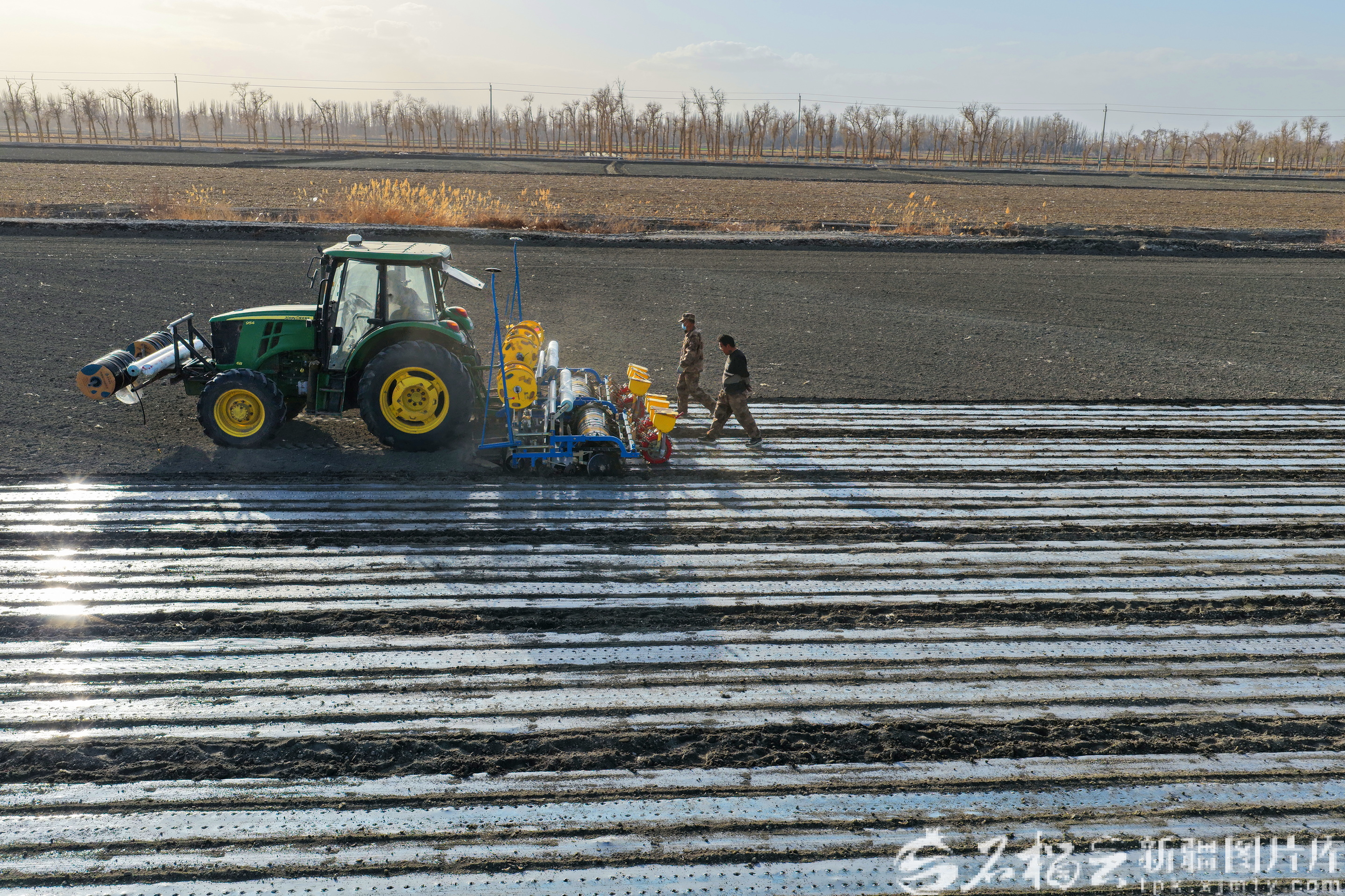 3月27日,新疆生产建设兵团第二师29团16连棉田里,一台搭载北斗导航终端的播种机穿梭作业,精准完成播种、铺膜等一系列工序。杜炳勋 摄