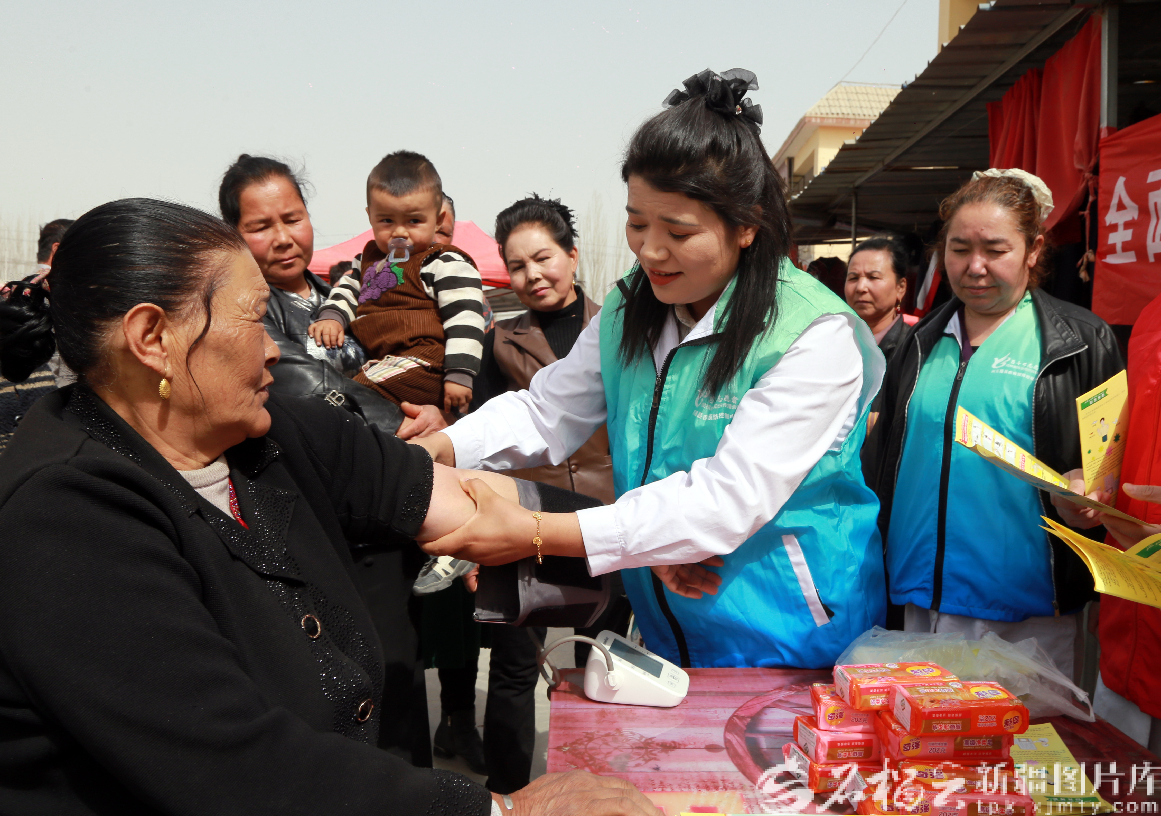 3月27日,医护工作者走进阿瓦提县塔木托格拉克镇的巴扎为村民义诊,同时开展结核病防治知识宣讲。包良廷 摄