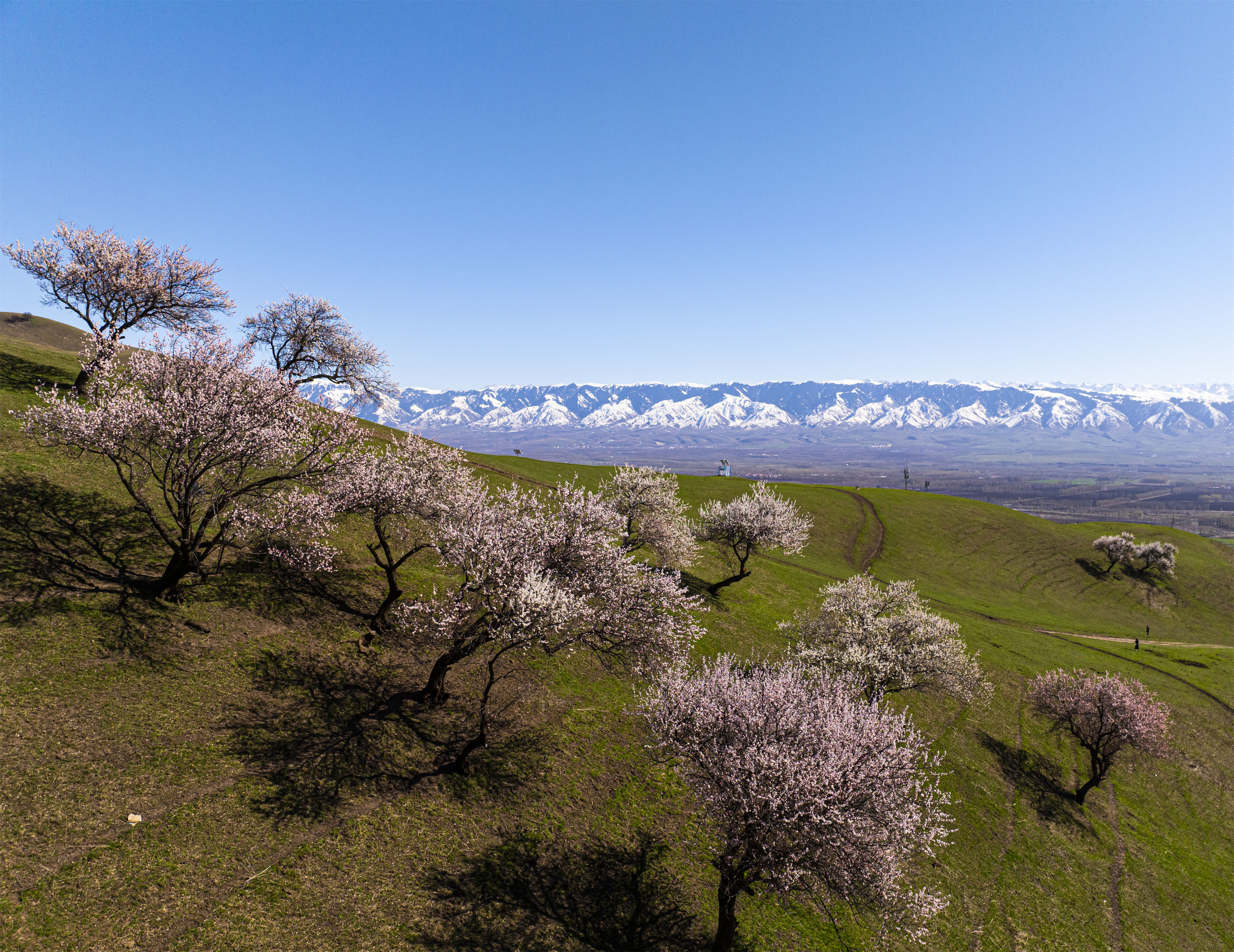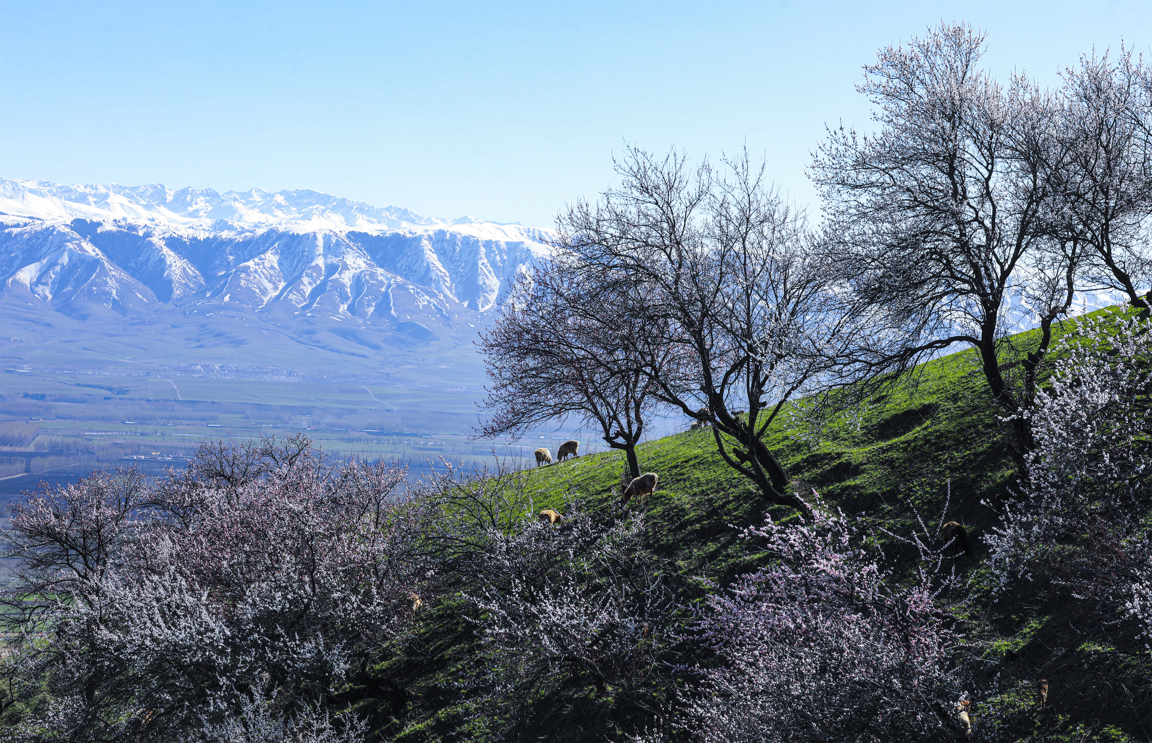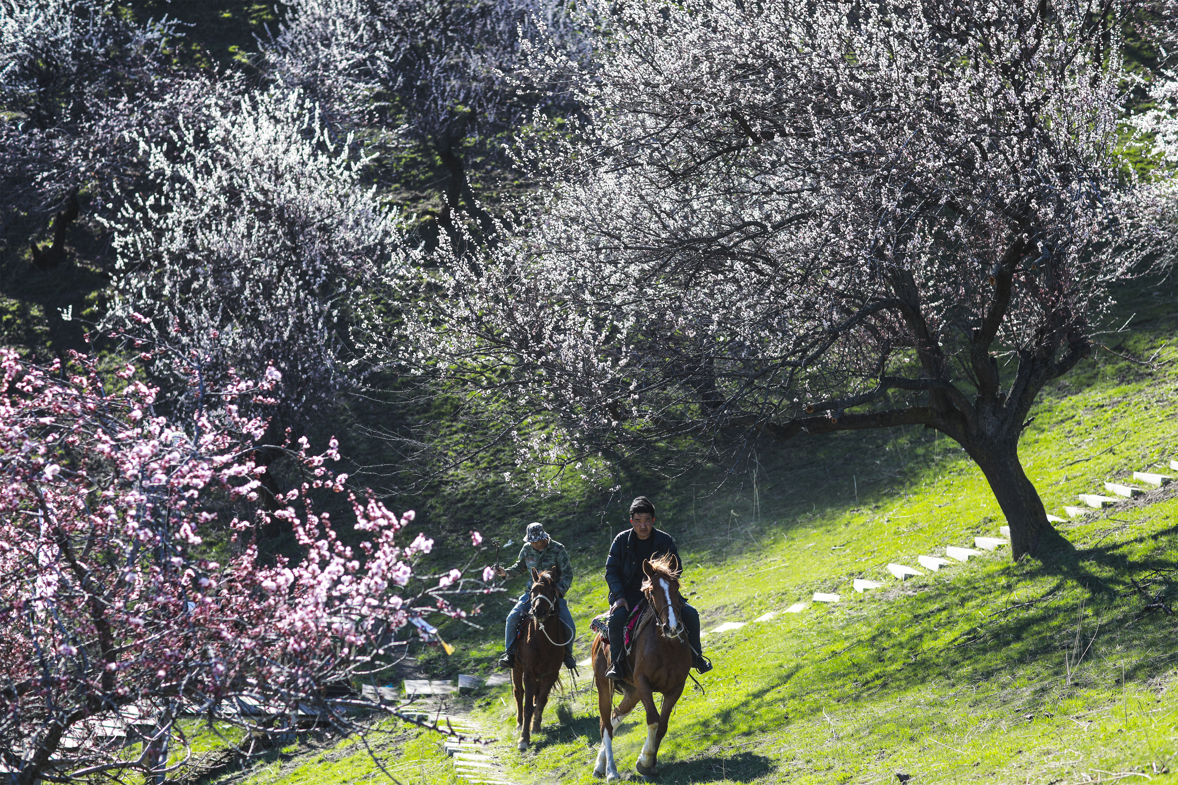 那拉提杏花谷拥有万亩原始野杏林,每年春季,这里都会成为伊犁河谷春日赏花的热门目的地。如今正值最佳赏花期,绚烂的花海不仅扮靓了山谷,让春日的新源处处洋溢着生机与活力。
