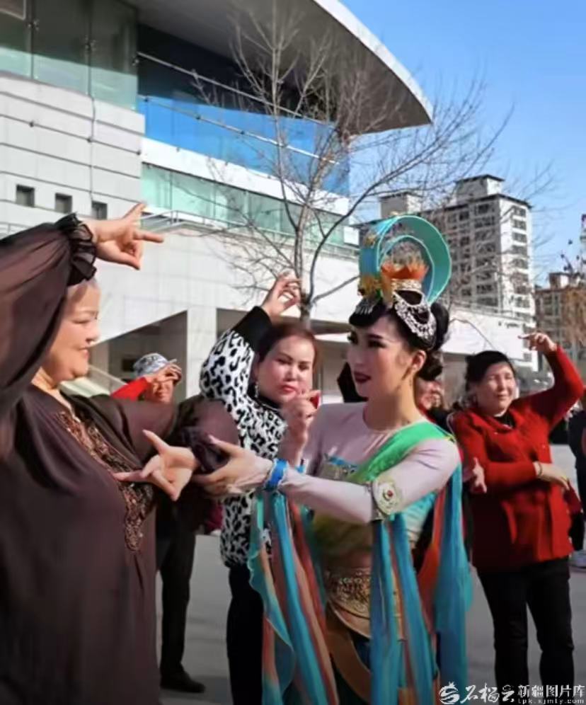 拜城县文化馆则主动发力,工作人员深入挖掘克孜尔石窟壁画中的“思维式”“吹笛式”“拇食相触式”等经典手势,精心编排简易易学的舞蹈动作,向社区、乡镇、学校发出免费培训“邀请函”,让各族群众在家门口就能跟着专业演员学习春晚同款舞蹈。“能在家门口跟着专业演员学春晚舞蹈,太难得了。我每天都来,既锻炼身体,还能了解龟兹文化。”库车市民刘志慧说。