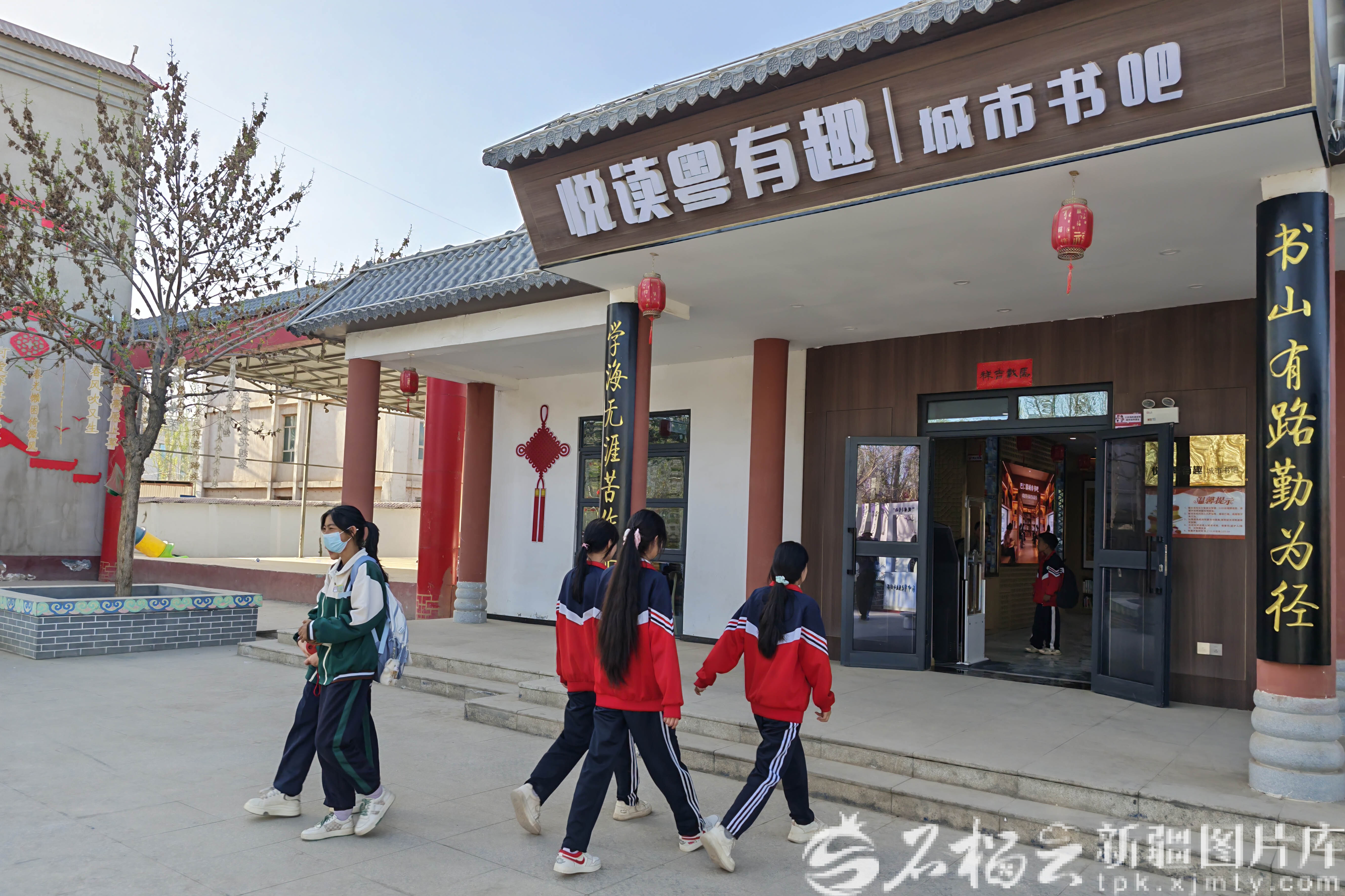 4月1日,学生在位于伽师县巴仁镇平安路的“悦读粤有趣”城市书吧读书。