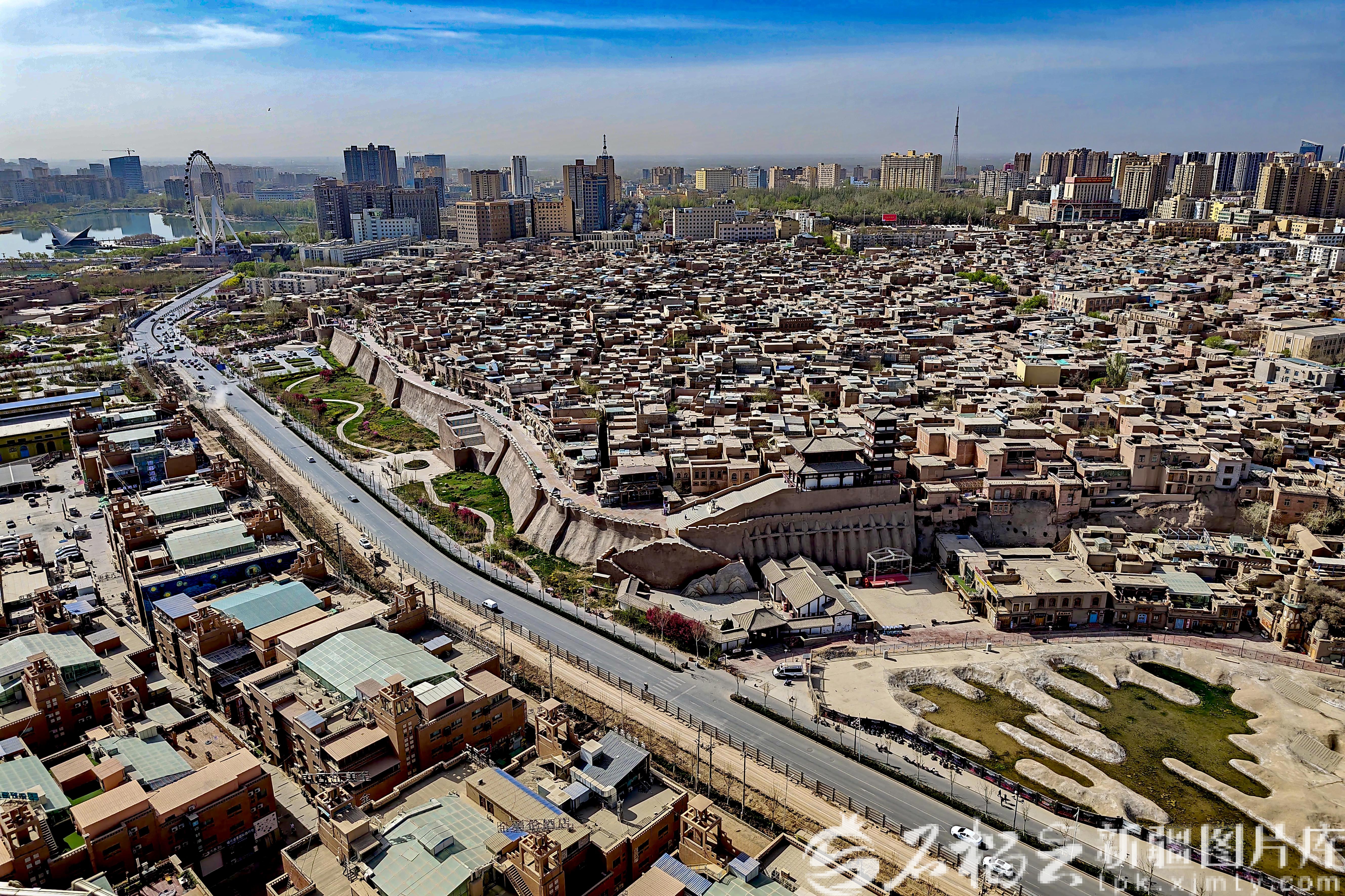 4月2日,在昆仑塔观景平台拍摄的喀什古城。