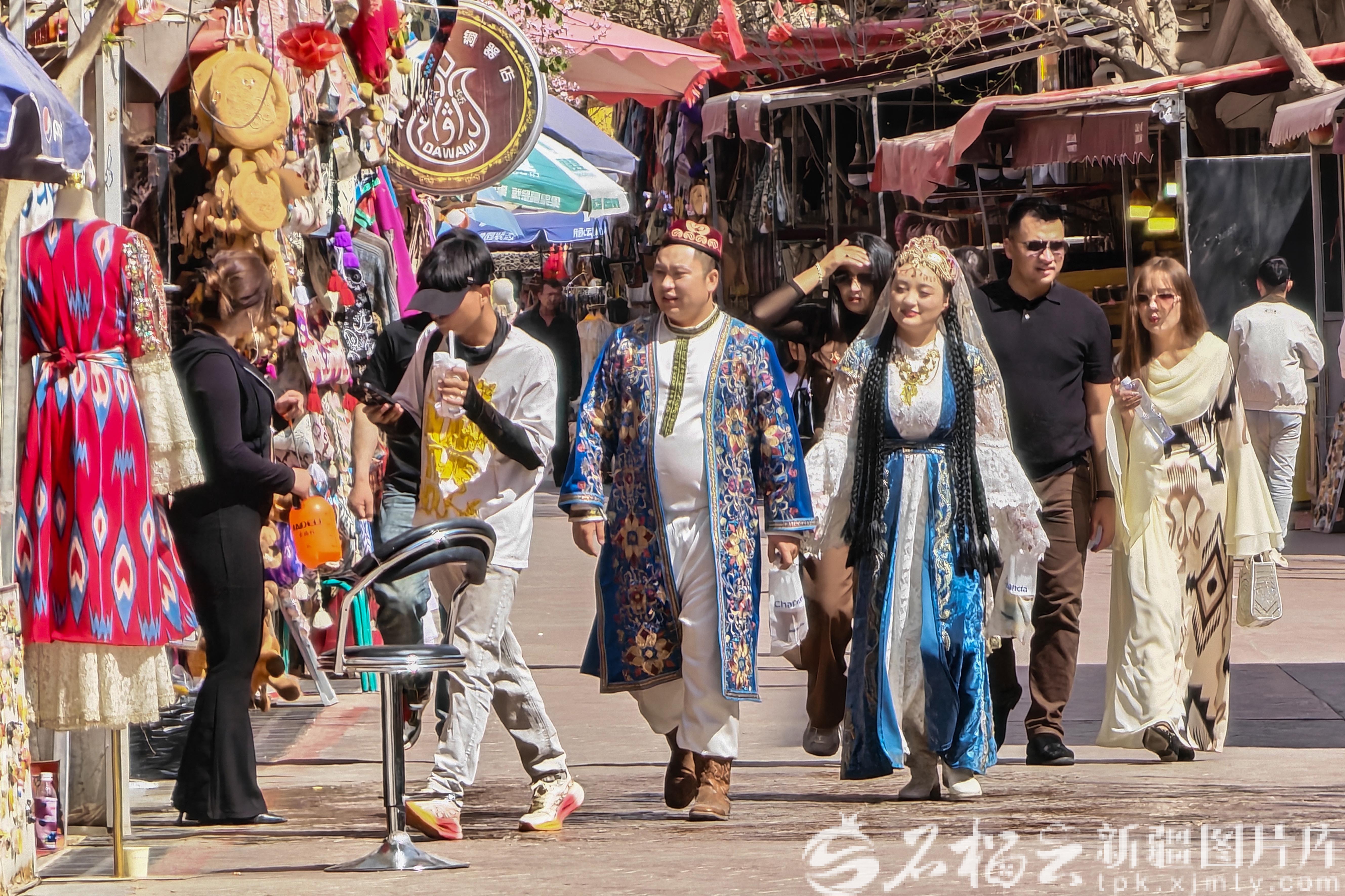 “这是我第二次带家人来喀什,春天的古城更有韵味。”来自重庆的游客张敏漫步在纵横交错的街巷中,一边品尝特色美食,一边用镜头记录下春日里的美好时光。像张敏这样的游客不在少数,大家穿梭在古城街巷,或是在汗巴扎大快朵颐,或是驻足观赏非遗技艺,尽情享受古城的惬意与繁华。