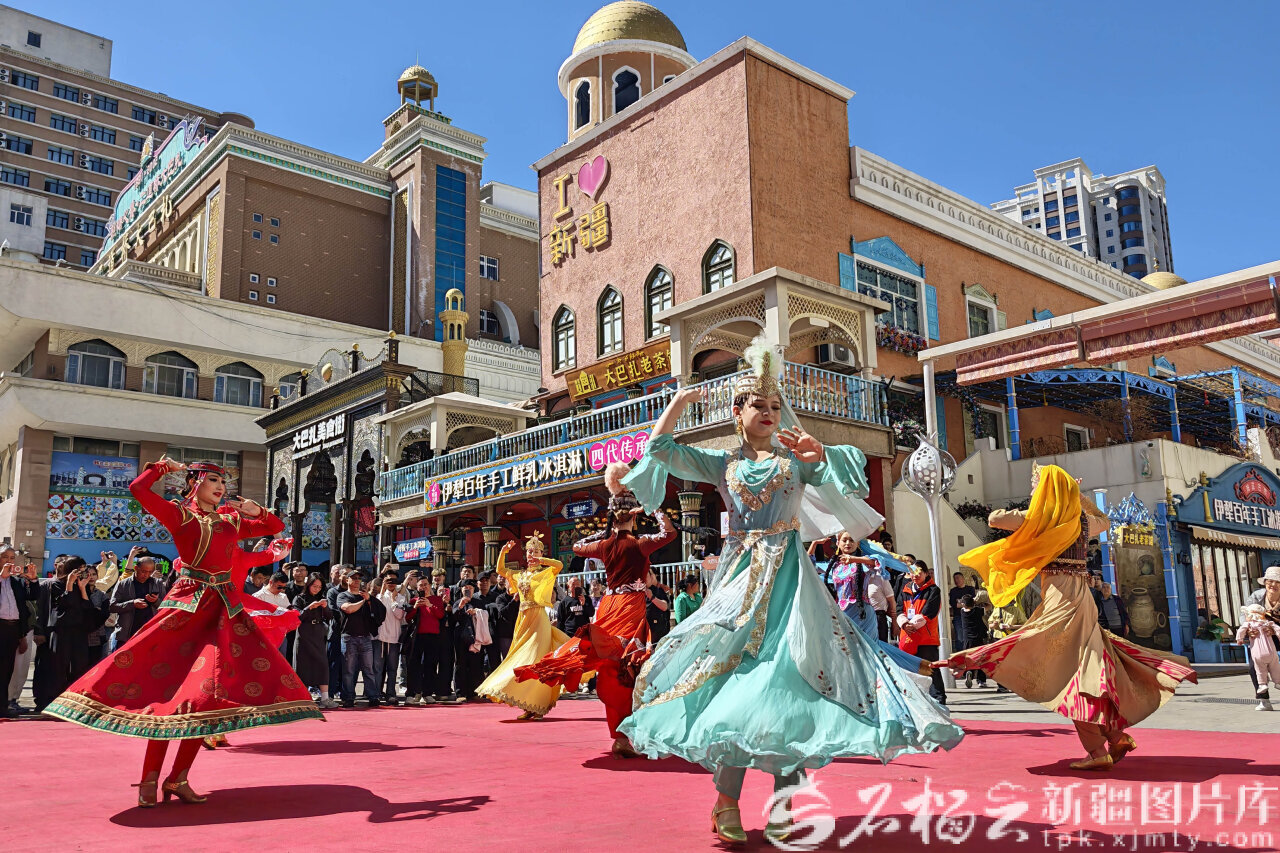 4月5日,演员在新疆国际大巴扎景区表演舞蹈。