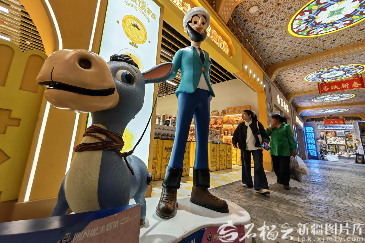 4月5日,游客在新疆国际大巴扎景区阿凡提主题馆参观。