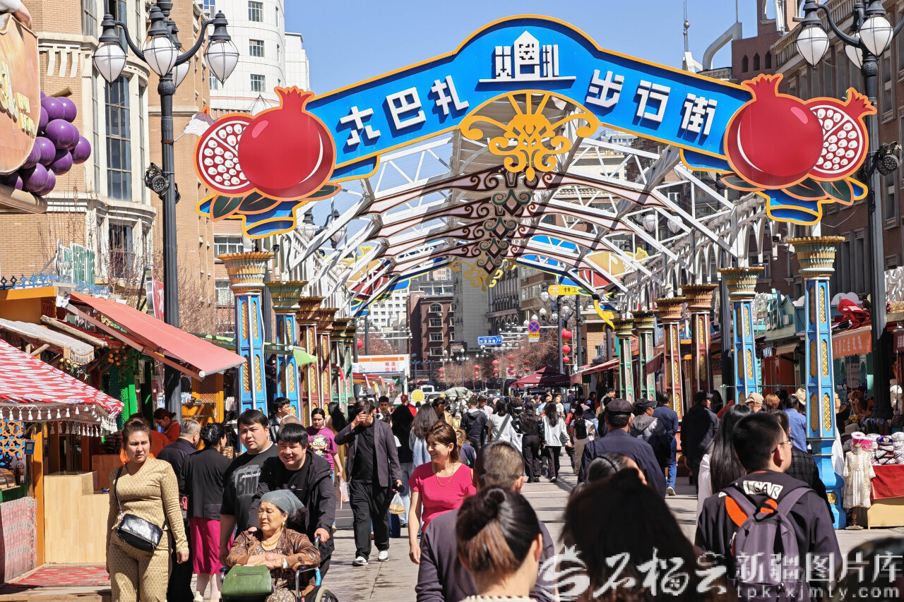 正值清明假期,多地中小学试点“春假”与清明假期叠加,旅游市场持续升温,新疆各地迎来客流高峰。作为新疆文旅重要景区之一,新疆国际大巴扎内游人如织,浓郁的民俗风情深深感染着每一位到访游客。