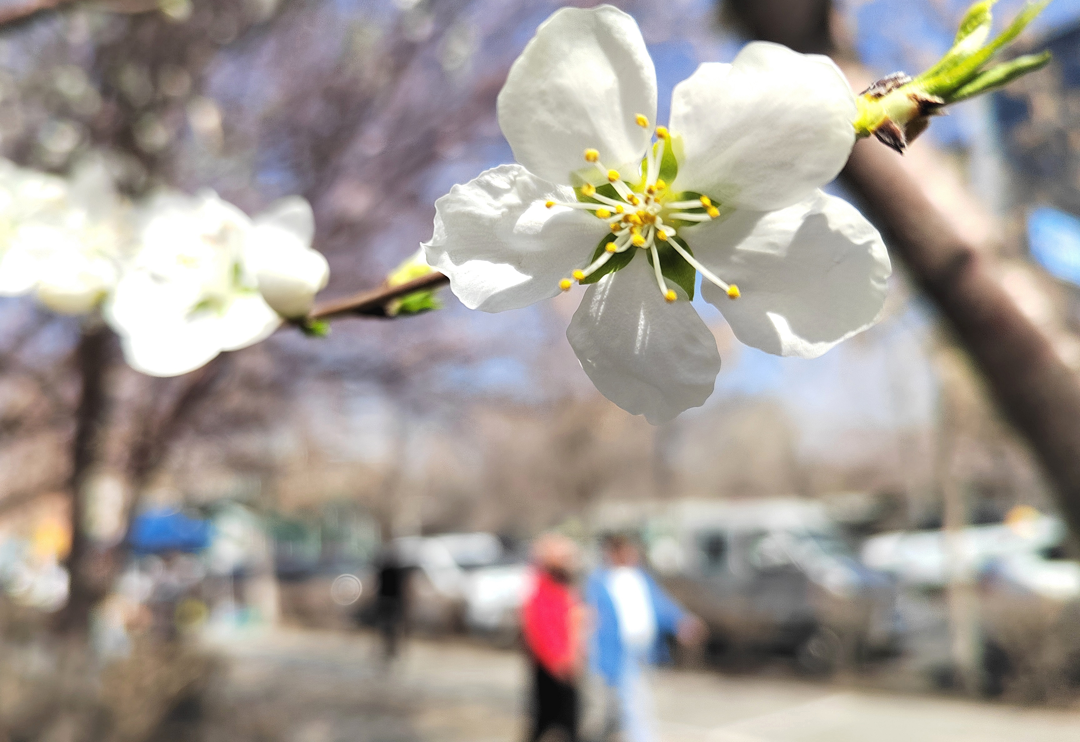 4月3日,市民漫步在乌鲁木齐市河北路新体巷,路旁的山桃花竞相绽放。连日来,乌鲁木齐市大街小巷繁花绽放,铺展成一幅生机盎然的春日画卷。石榴云/新疆日报记者 邹懿摄