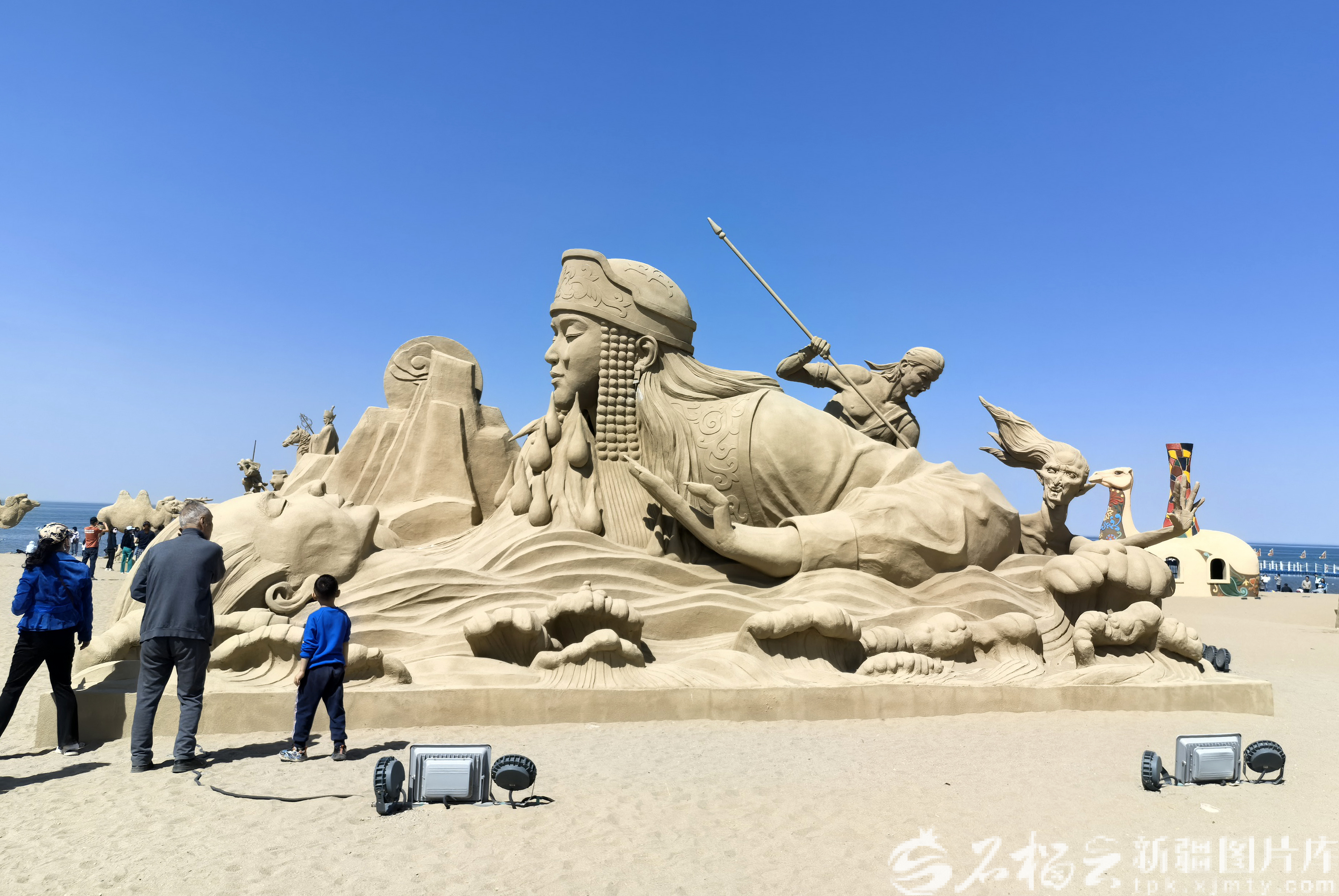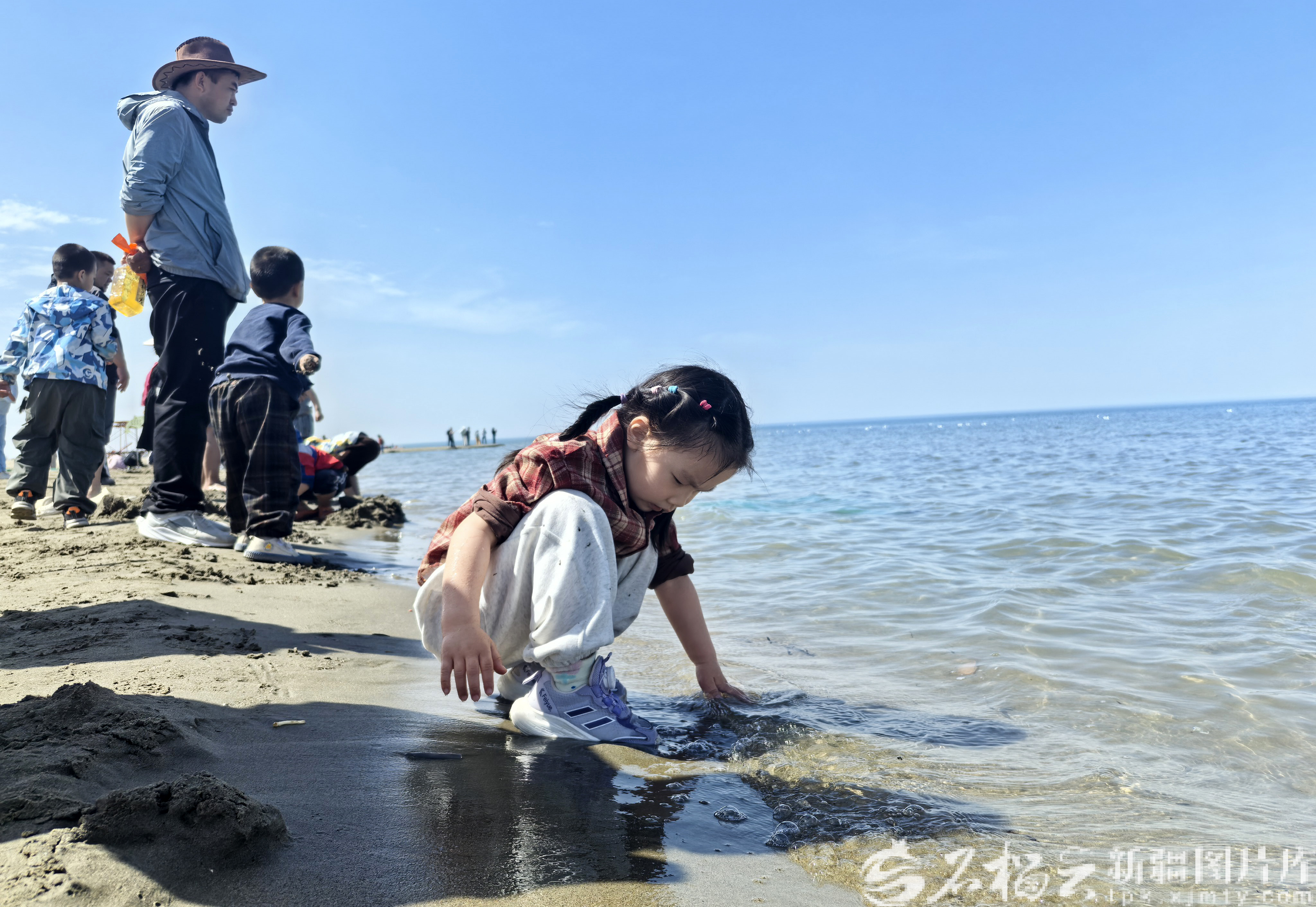 4月5日,游客在博斯腾湖白鹭洲景区游玩。