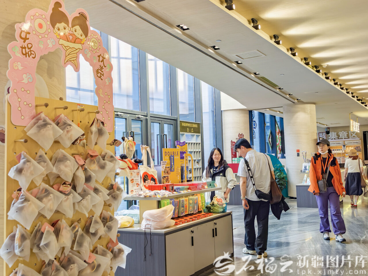 4月6日,清明假期,市民、游客在新疆博物馆“丝路印坊”文创集章区选购特色文创、打卡集章,为文化之旅留下专属纪念。