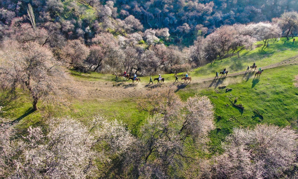 春风送暖,那拉提杏花谷万亩野杏林,迎来踏青赏花热潮。原始野杏林绵延山谷,花香沁人心脾。各地游客徜徉花间,或漫步轻嗅芬芳,或策马穿行花海,定格绿草与繁花同框的绝美瞬间。微风拂过,花瓣纷飞,游人沉醉于自然野趣,尽享春日限定浪漫。
