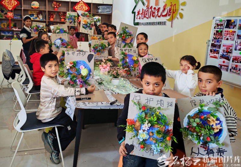 4月3日,乌鲁木齐经开区(头屯河区)西湖街道红沙滩路社区开展世界地球日青少年创意手工主题活动,引导孩子们践行绿色生活、争做环保小卫士。邓雨薇摄