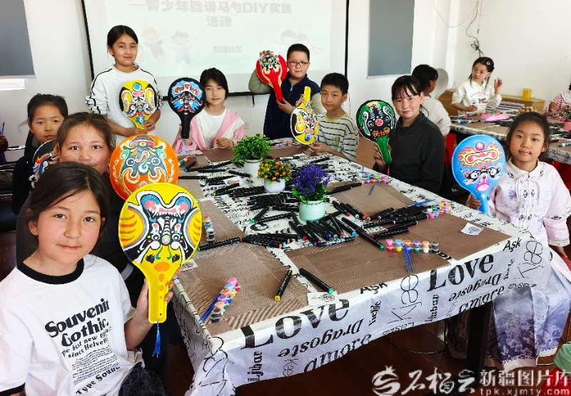 4月3日,乌鲁木齐经开区(头屯河区)王家沟街道百园社区组织辖区青少年在社区活动室开展马勺脸谱DIY活动。徐会艳摄