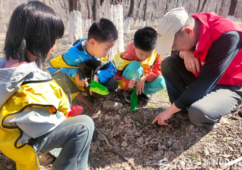 4月3日,乌鲁木齐经开区(头屯河区)头屯河街道柯坪路西社区组织辖区小学生走进滨湖河公园,开展春假徒步踏春实践活动,让孩子们在自然中感受春日魅力,学习识别各种植物。孙文文摄