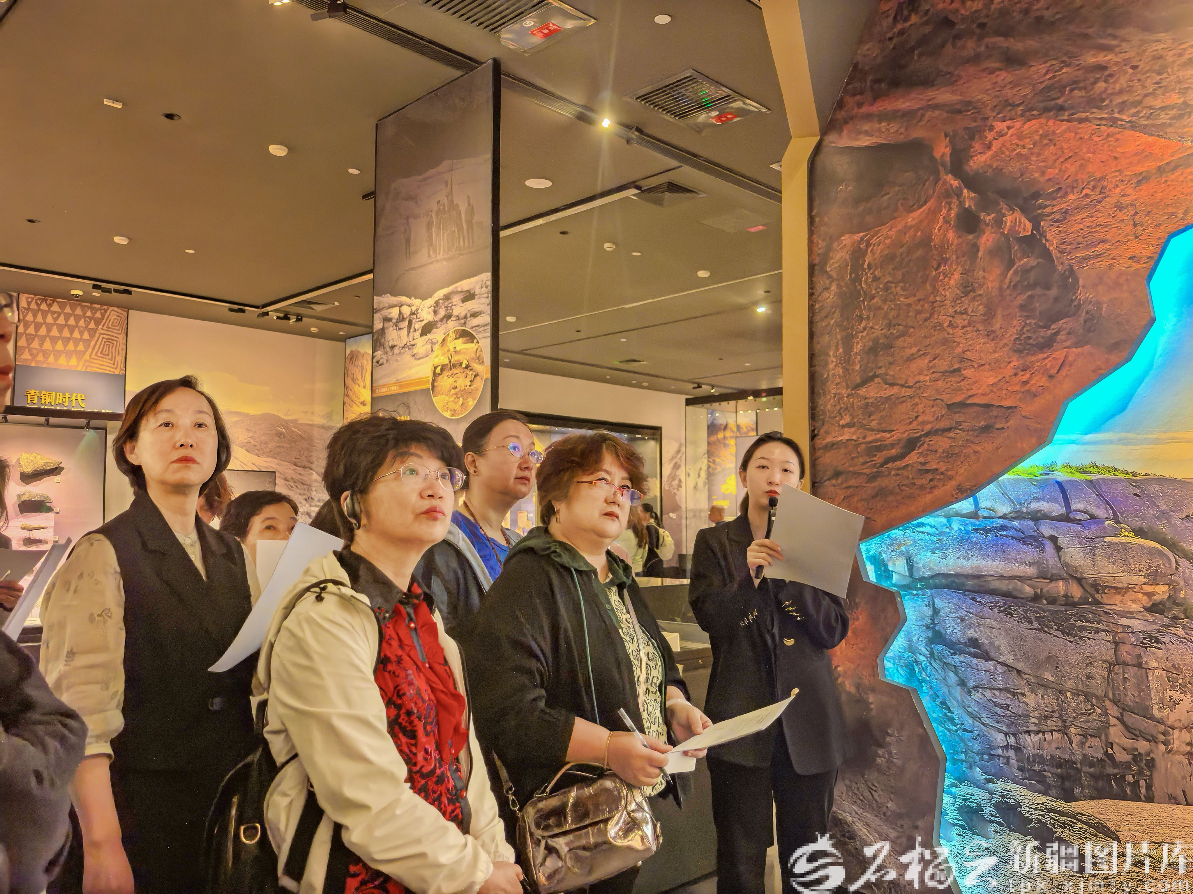 4月8日,在通天洞复原展区,大家聆听专业讲解员讲解遗址背景,探索远古人类生活印记。