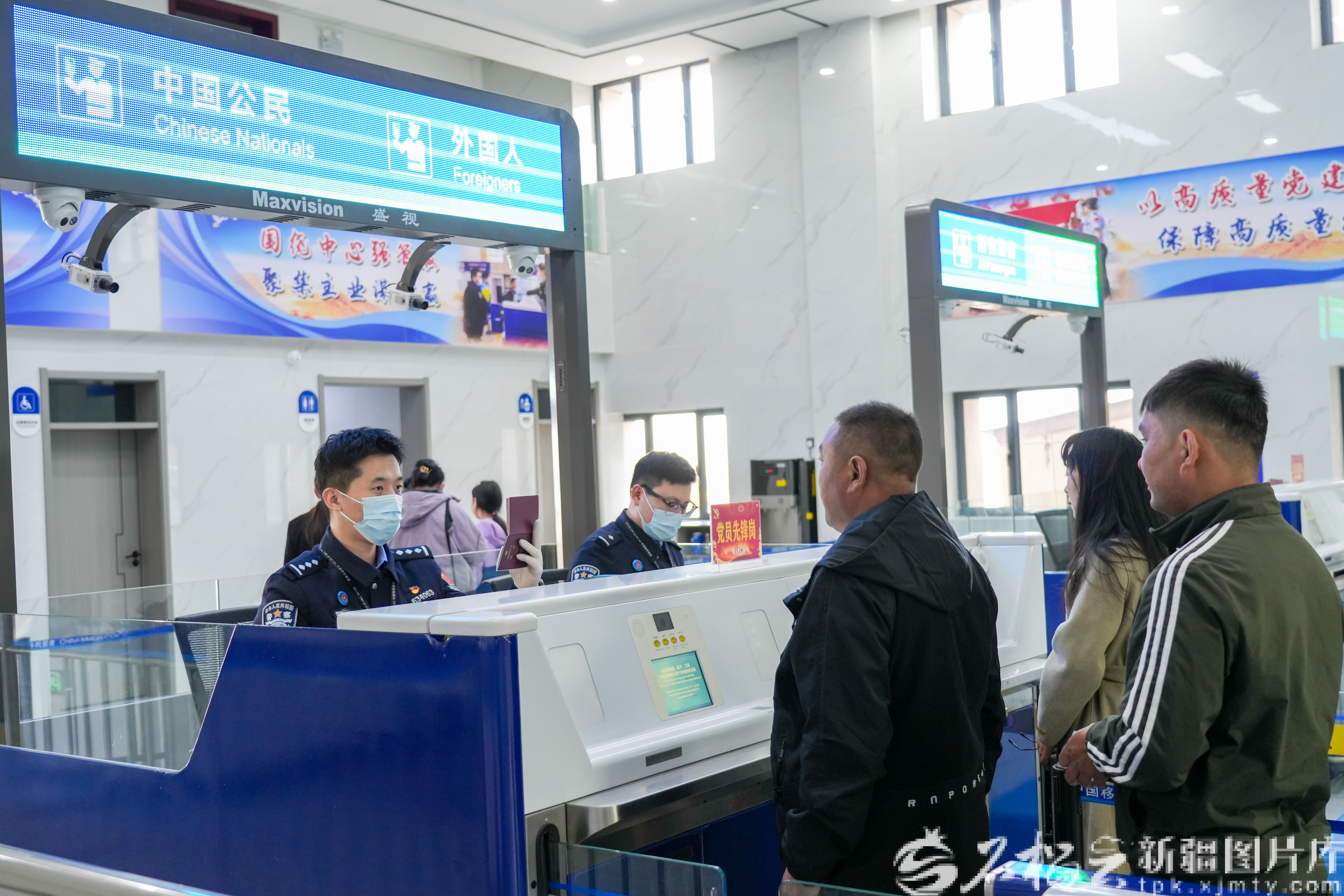 4月1日,吉木乃边检站民警为出境旅客办理通关手续。陈亚伟 摄