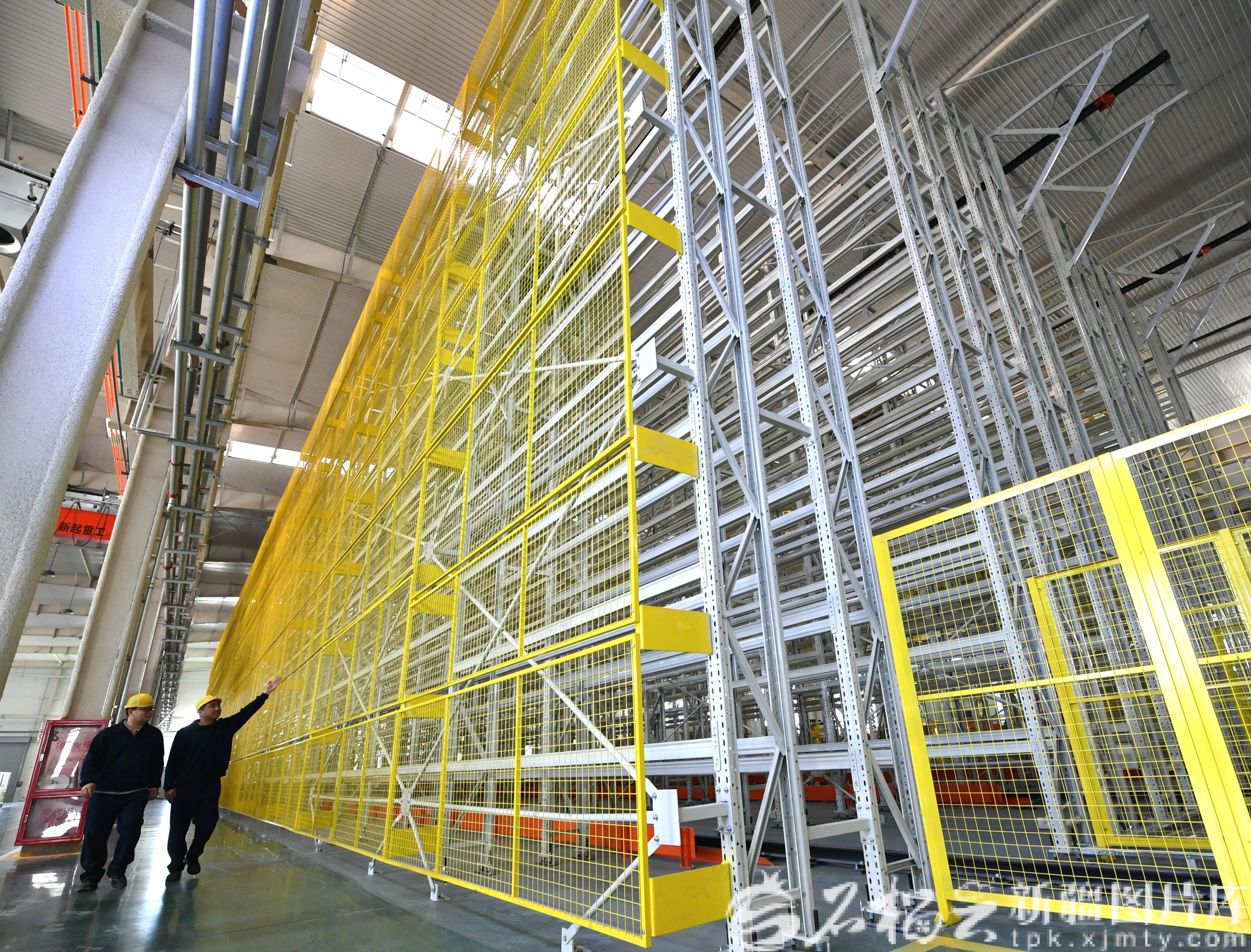 4月13日,工作人员在新建成的智能立体仓库巡检。