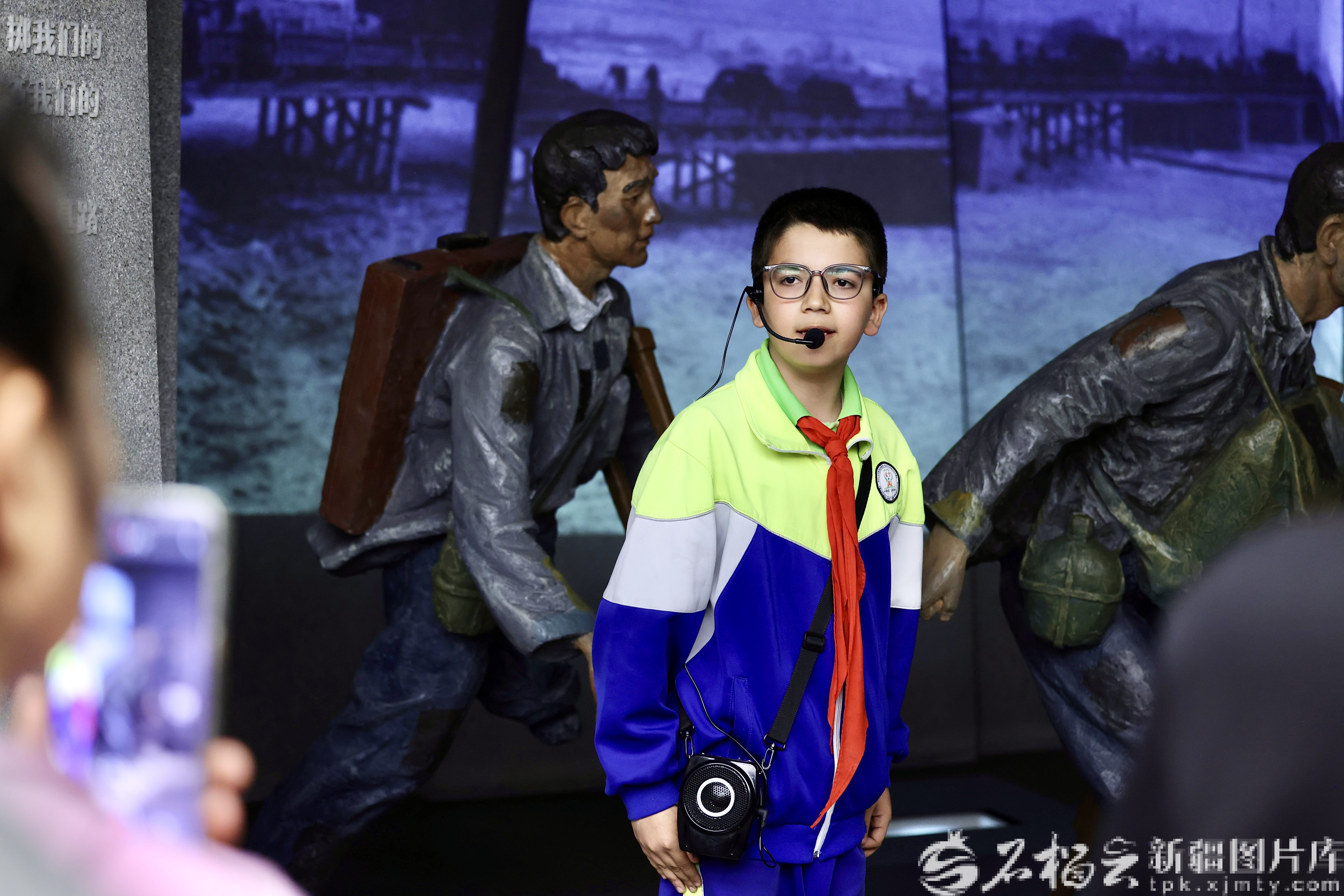 4月14日,小小讲解员讲述文物背后的英雄故事,带领观众沉浸式参观学习。