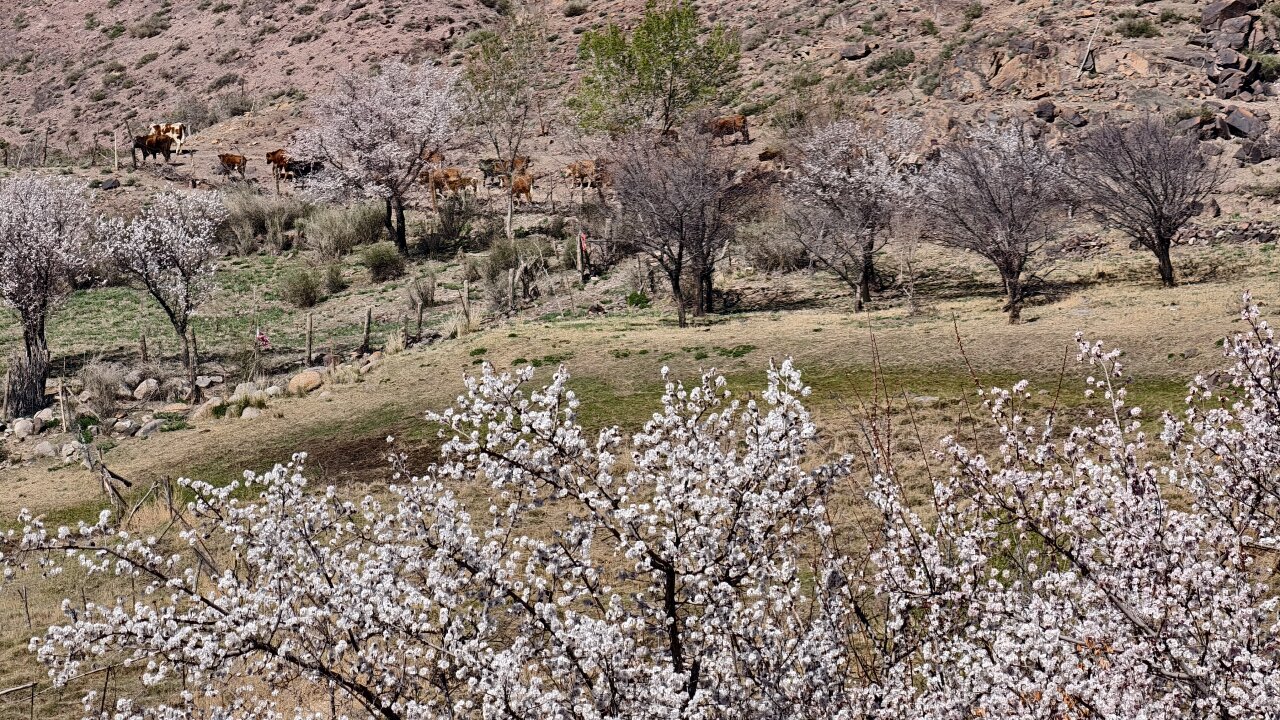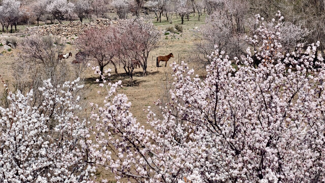 新疆哈密:东天山下杏花闹 马鹿羚羊踏春来