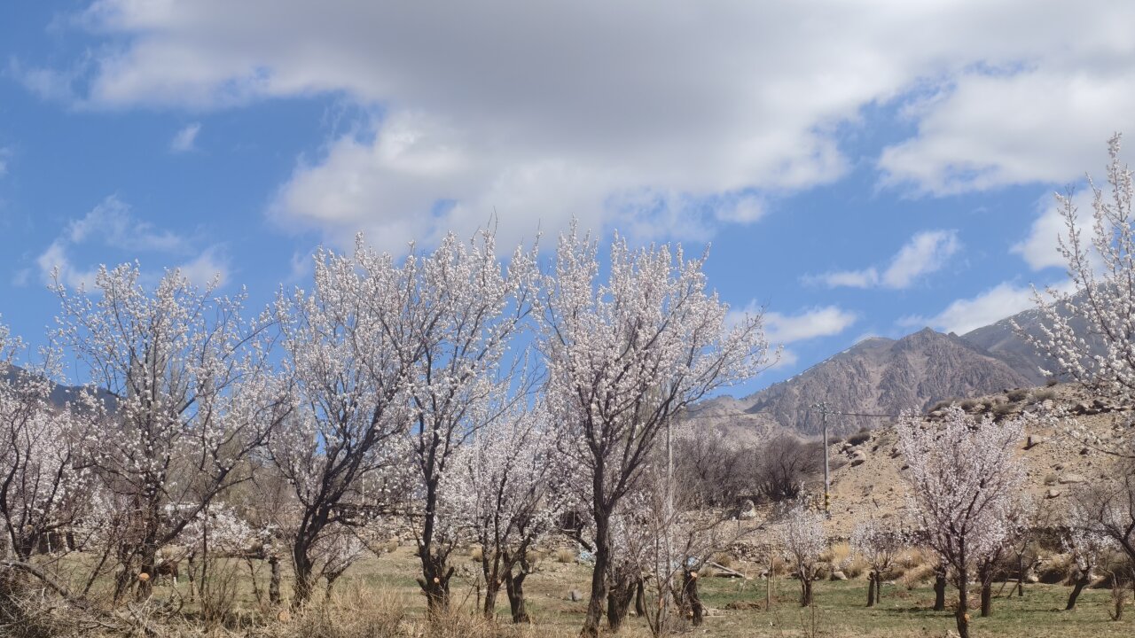 2026年4月13日,新疆哈密市伊州区西山乡卡拉卡依提村,漫山杏花绽放。通讯员达吾提·热夏提 摄
